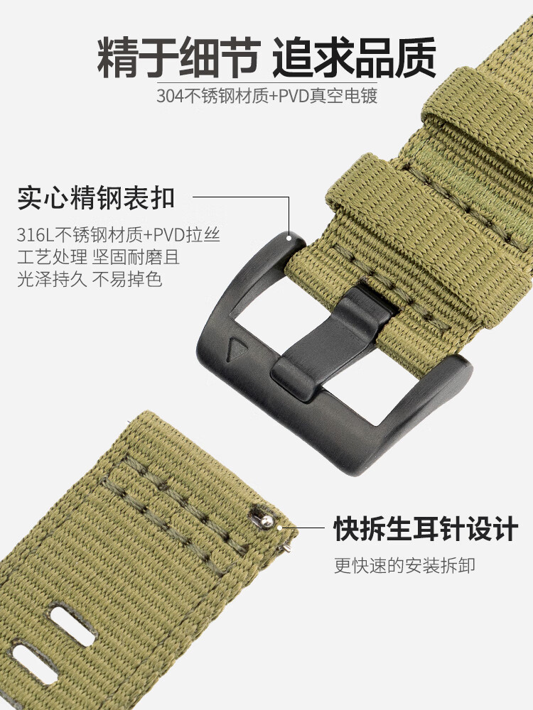 ENDUROBAND适用佳明Garmin手表表带 适配255/265/965/745/venu3/2原装战术尼龙快拆表带 军绿色 22mm通用快拆接口