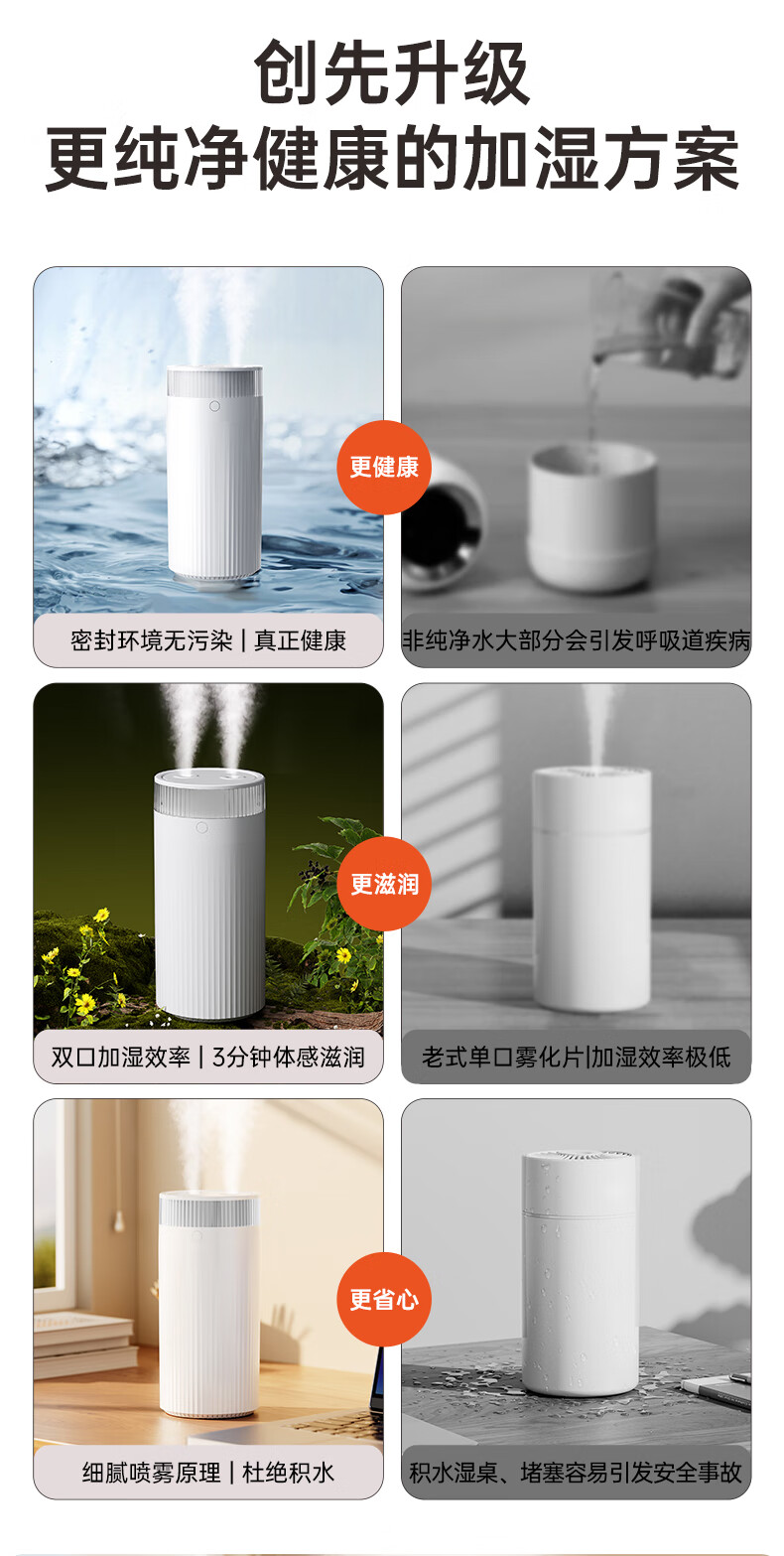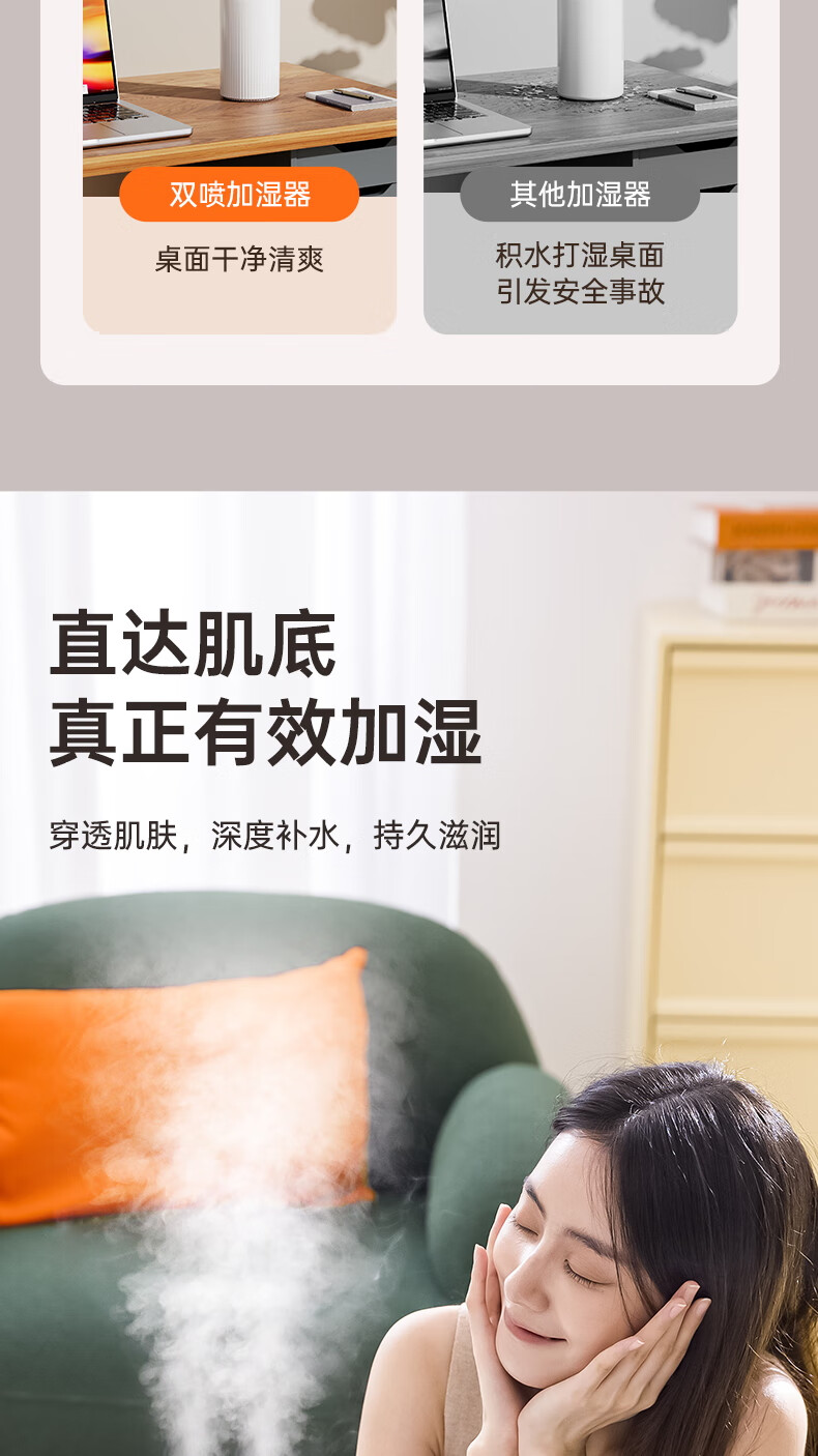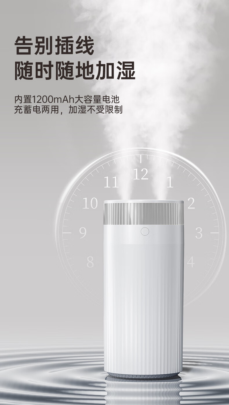 RASW德国加湿器小型办公室桌面卧室宿舍学生家用迷你便携usb充电车载空气香薰机喷雾孕妇婴儿补水静音 【大地棕 旗舰款】 双口齐喷 双倍滋润 小巧便携