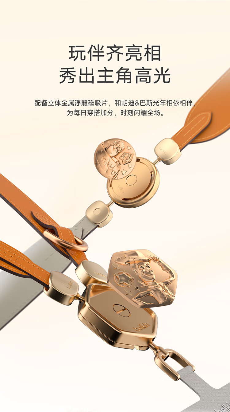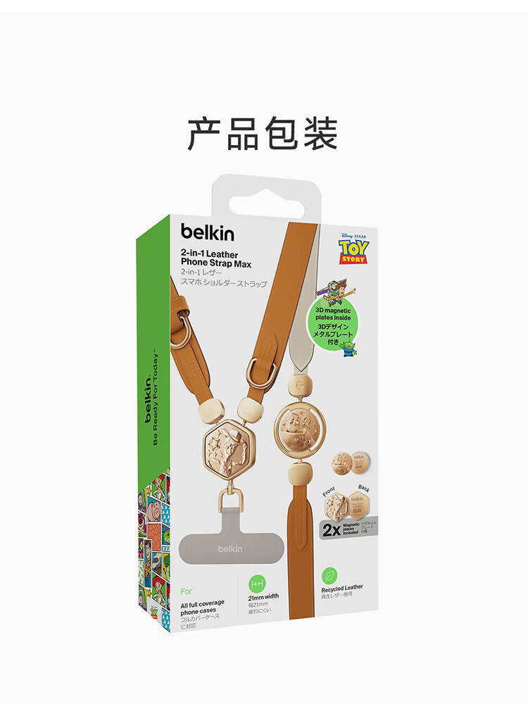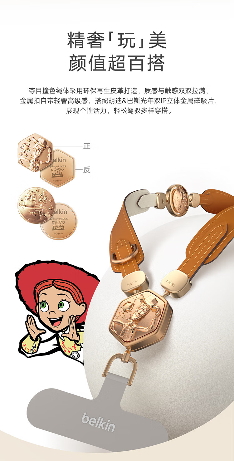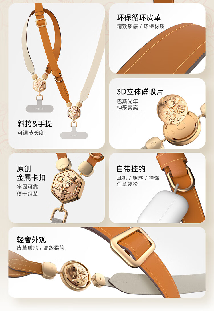贝尔金(BELKIN)手机挂绳手腕 手机链手机绳高级感挂脖斜跨手机防丢绳带手机垫片 皮革二合一 玩具总动员