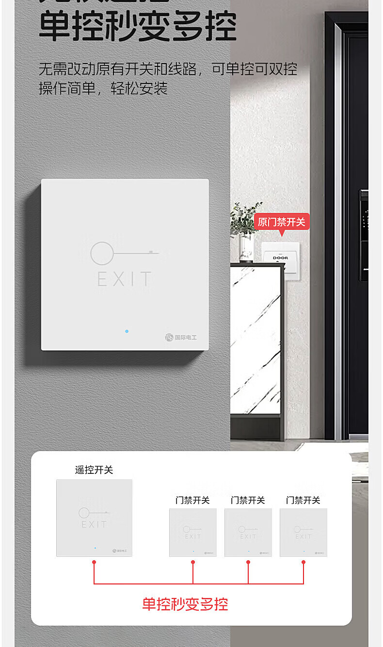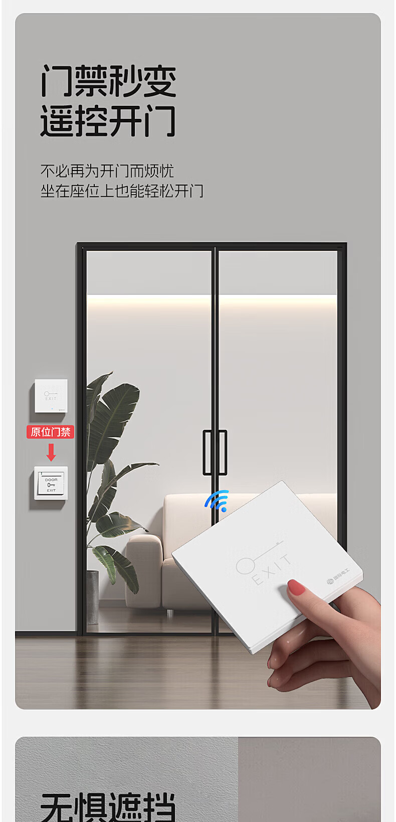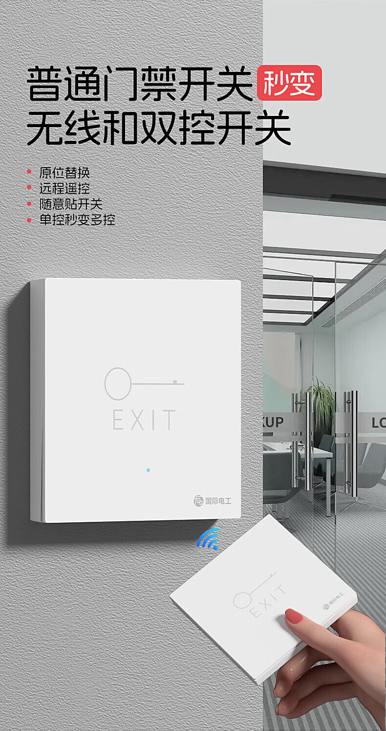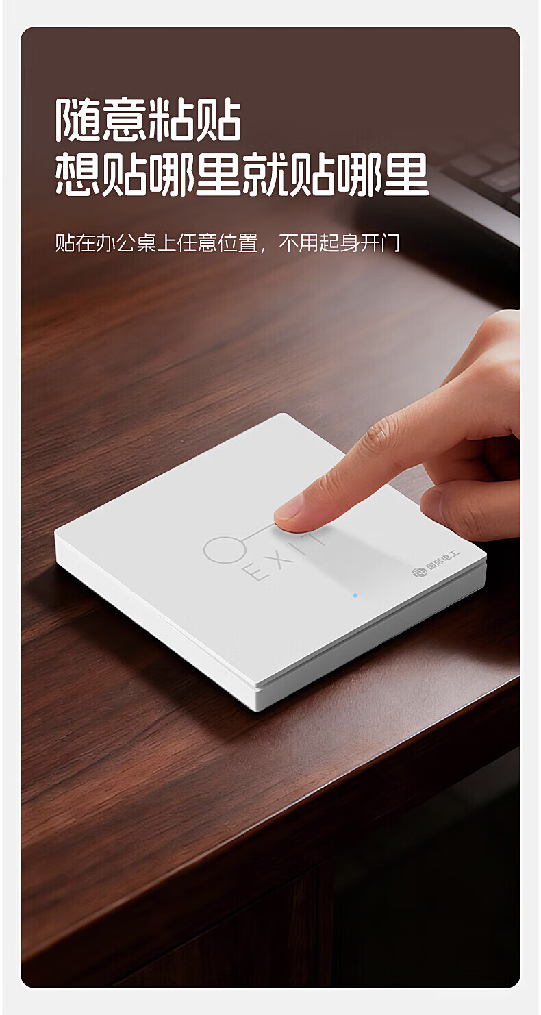 国际电工(FDD)无线遥控门禁开关面板办公室免布线开门按钮小区进出暗装随意贴 白色门禁开关套装【暗装】