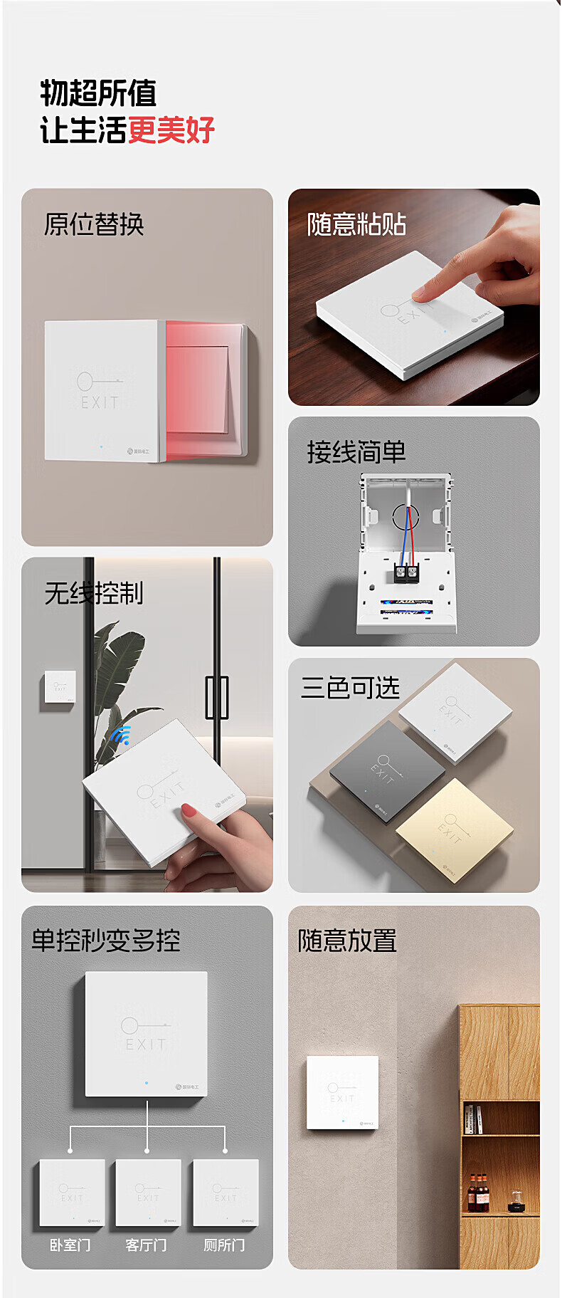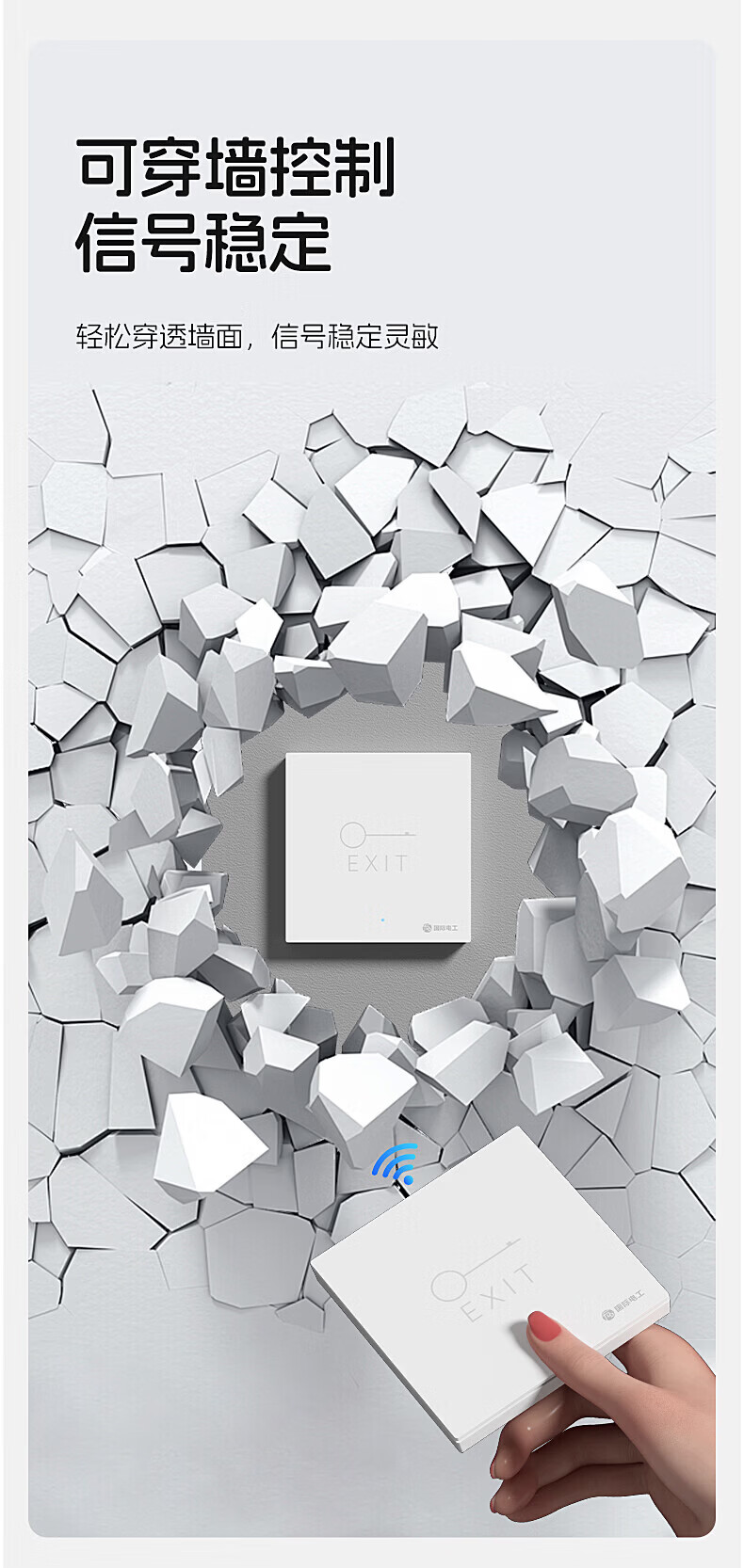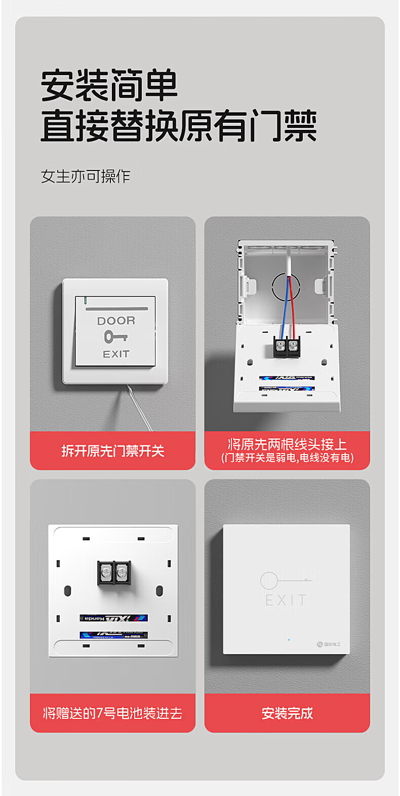 国际电工(FDD)无线遥控门禁开关面板办公室免布线开门按钮小区进出暗装随意贴 白色门禁开关套装【暗装】