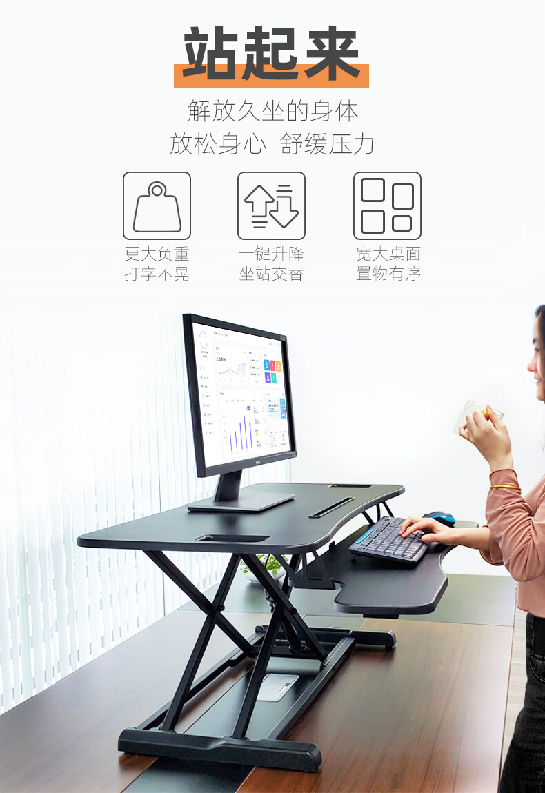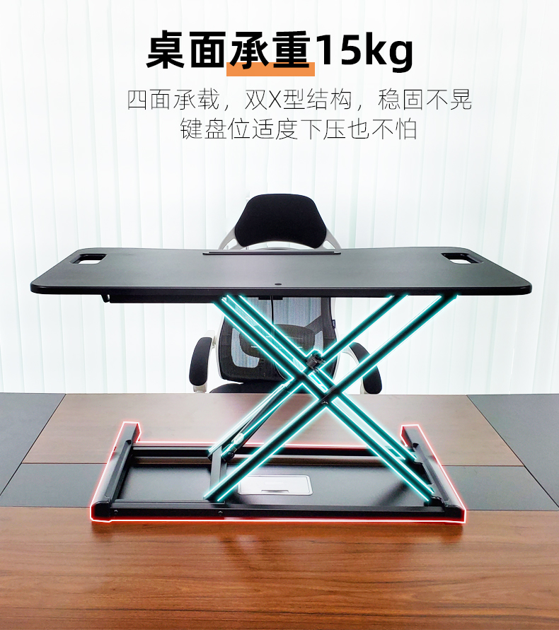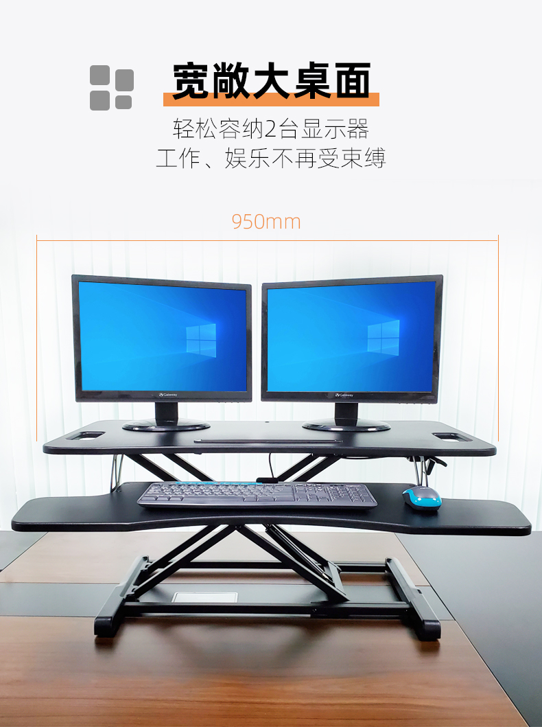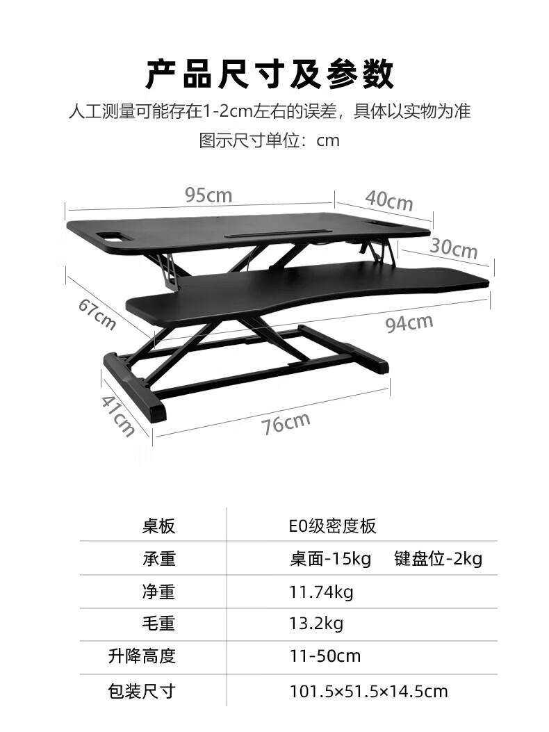 ProiTable升降桌 电脑桌增高架桌面升降台双显示器站立式办公工作台升降架 黑色 桌面95x67 升降范围11-50(cm) 出口标准MDF板材+耐磨PVC饰面