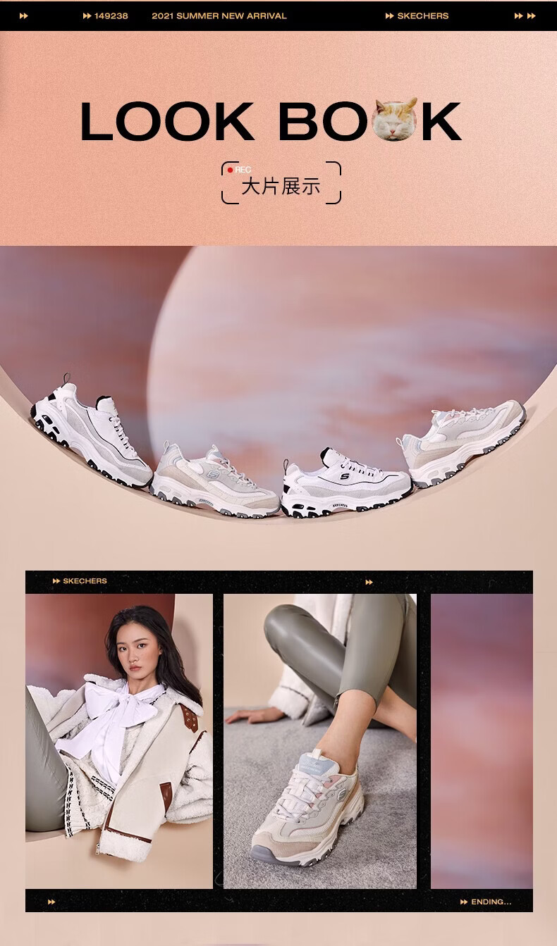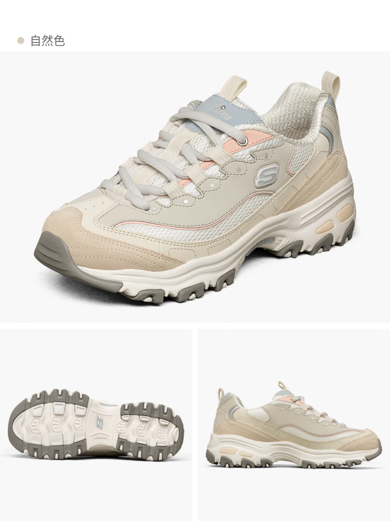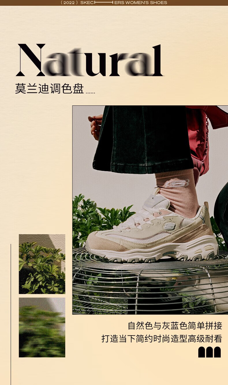 斯凯奇(Skechers)奶茶熊QQ豆乳秋季新款女鞋潮流复古老爹鞋舒适增高运动鞋149238 自然色/NAT 36