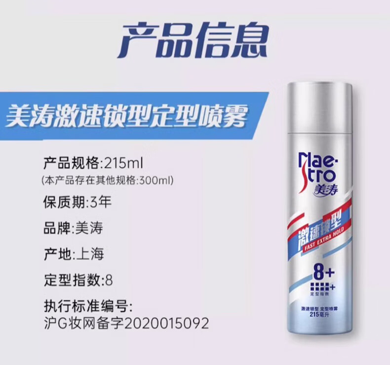 美涛发胶定型男士发胶激速锁型造型喷雾215ml定型喷雾搜索词热门商品