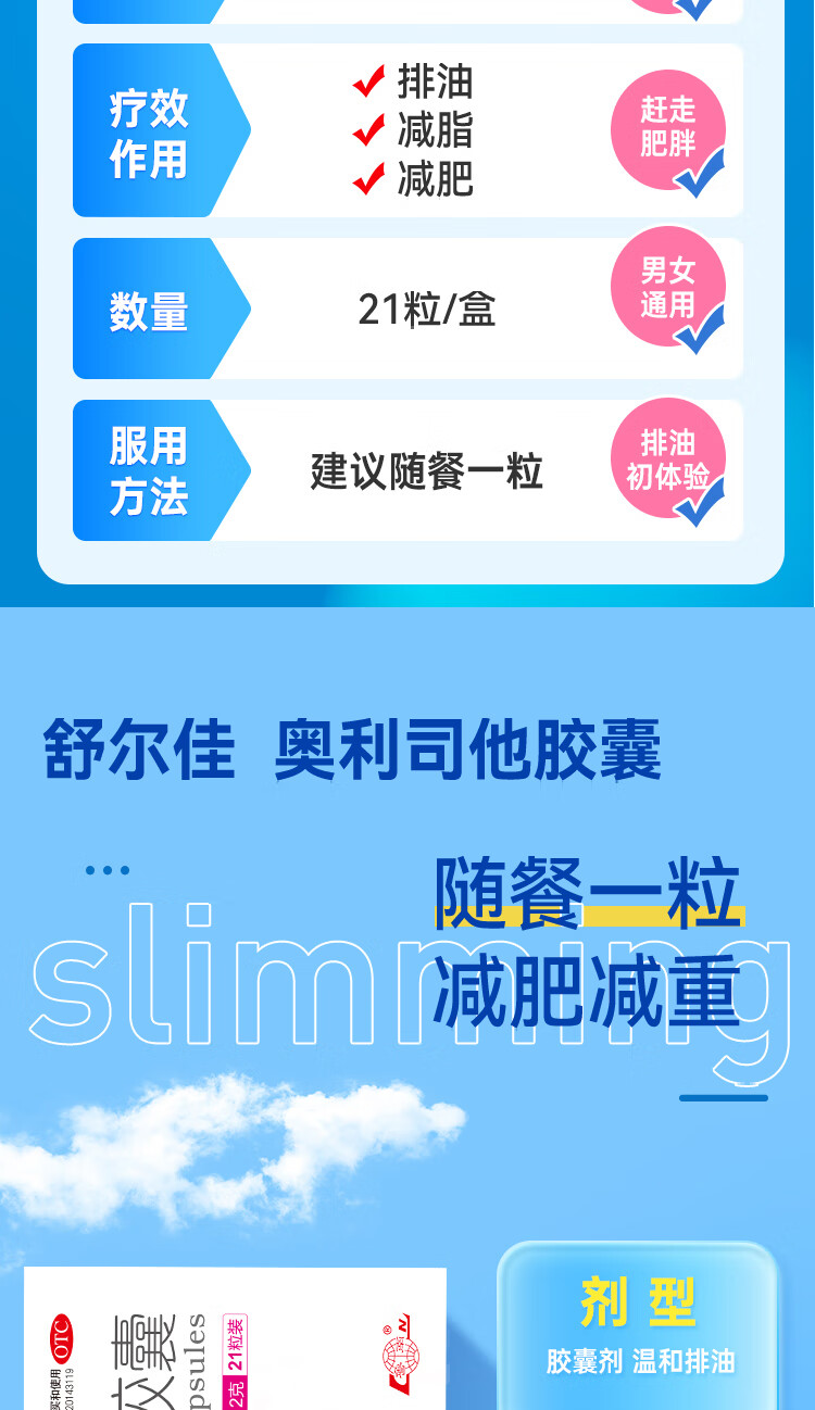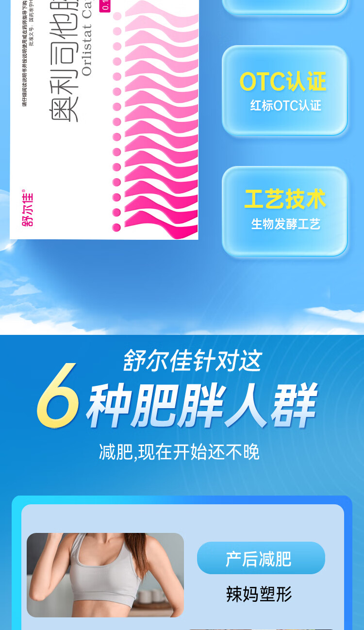 [舒尔佳]奥利司他胶囊 0.12g*7粒 1盒装 0.12g*7粒 减肥减脂减重OTC减肥药减重治疗肥胖 排油体验装