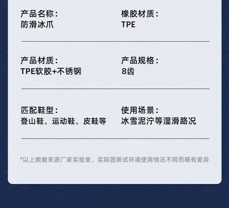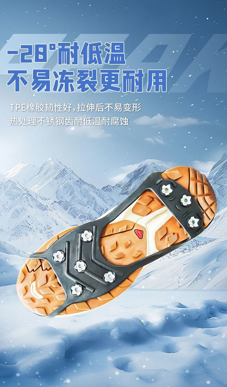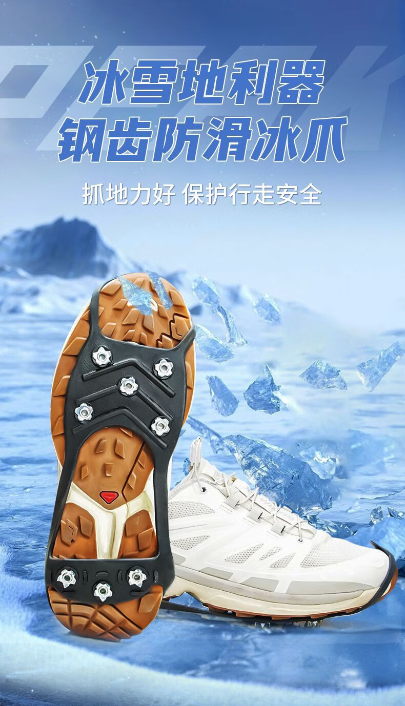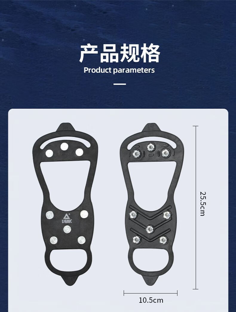 匹克户外冰爪雪地8齿防滑鞋套登山冰面防摔成人老人通用东北旅游 1双【8齿钢爪 升级加厚】均码 匹克【冰雪环境必备】耐磨 耐低温