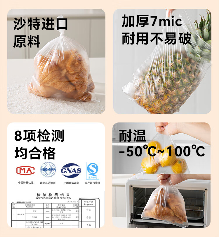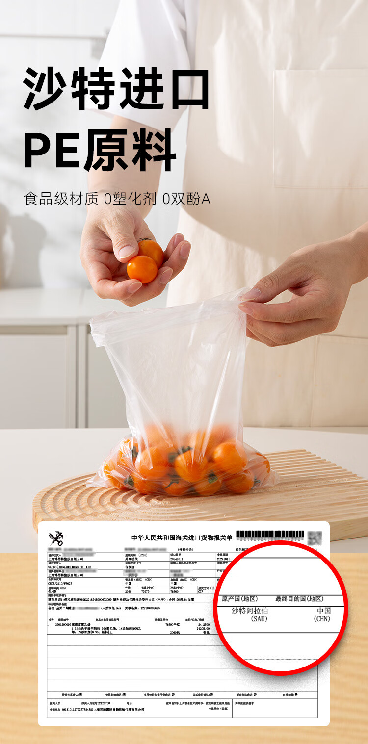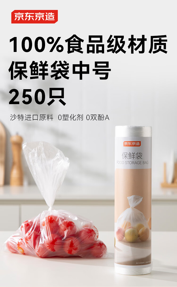京东京造 保鲜袋 食品级塑料袋锁水保鲜20*30cm 中号250只