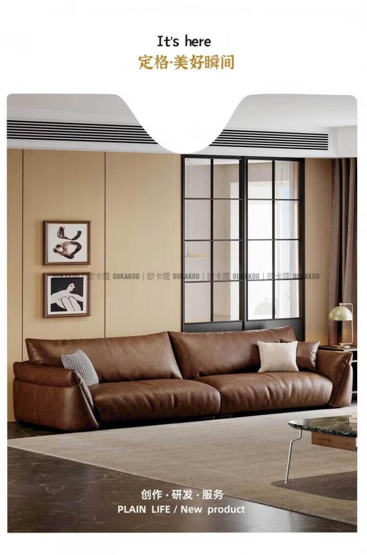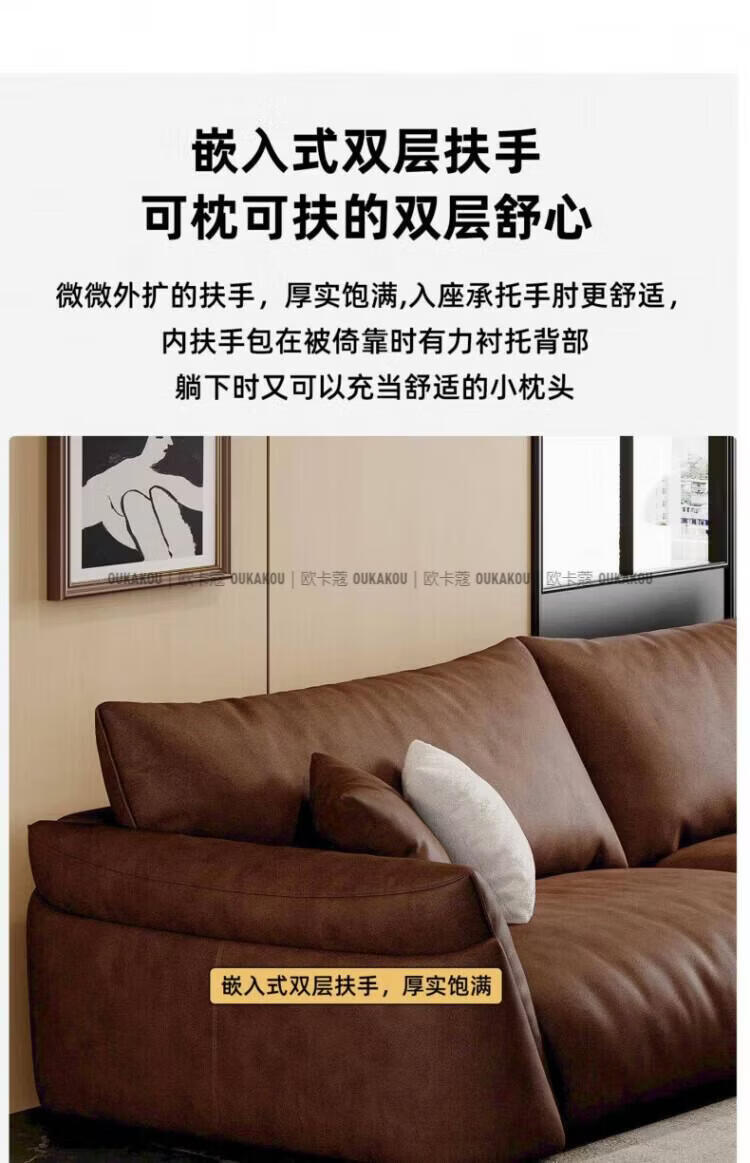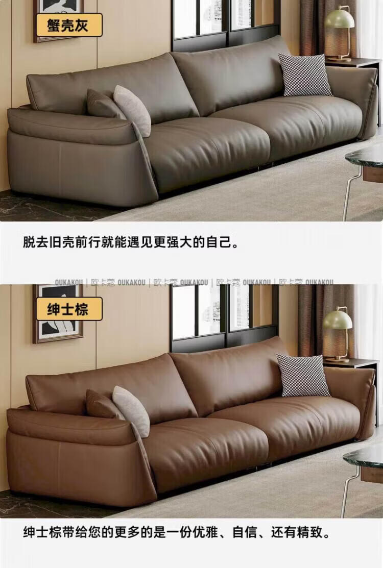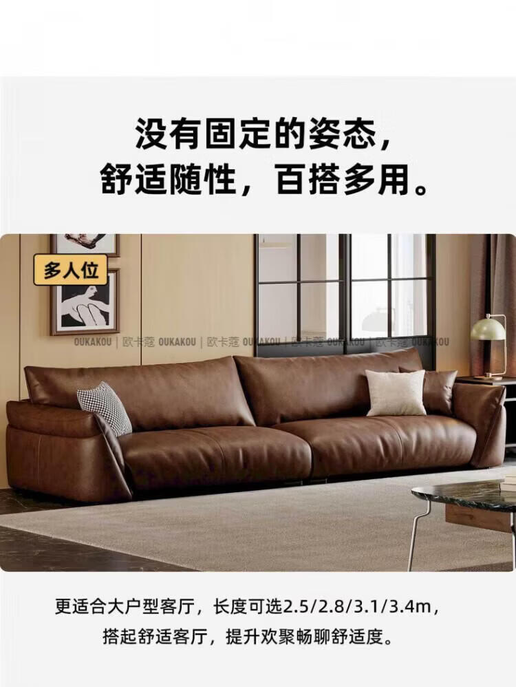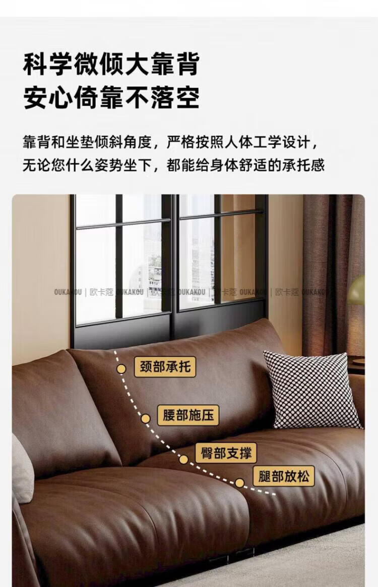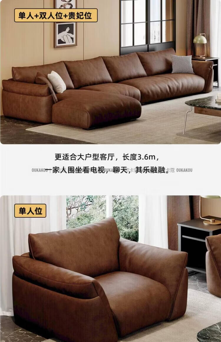欧卡蔻2026新款沙发客厅真皮现代简约头层牛皮轻奢直排贵妃三人位沙发 (接触面真皮)焦糖色 170x98x84cm