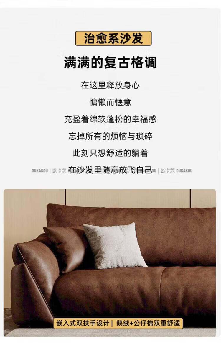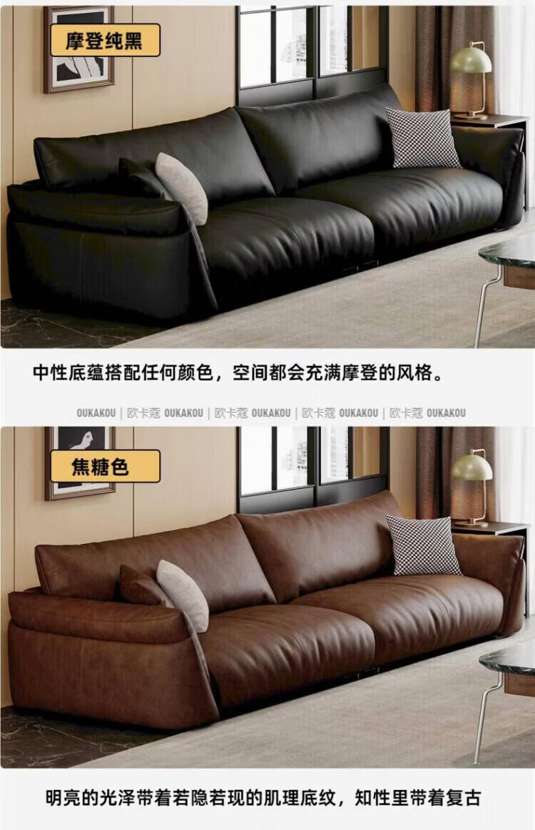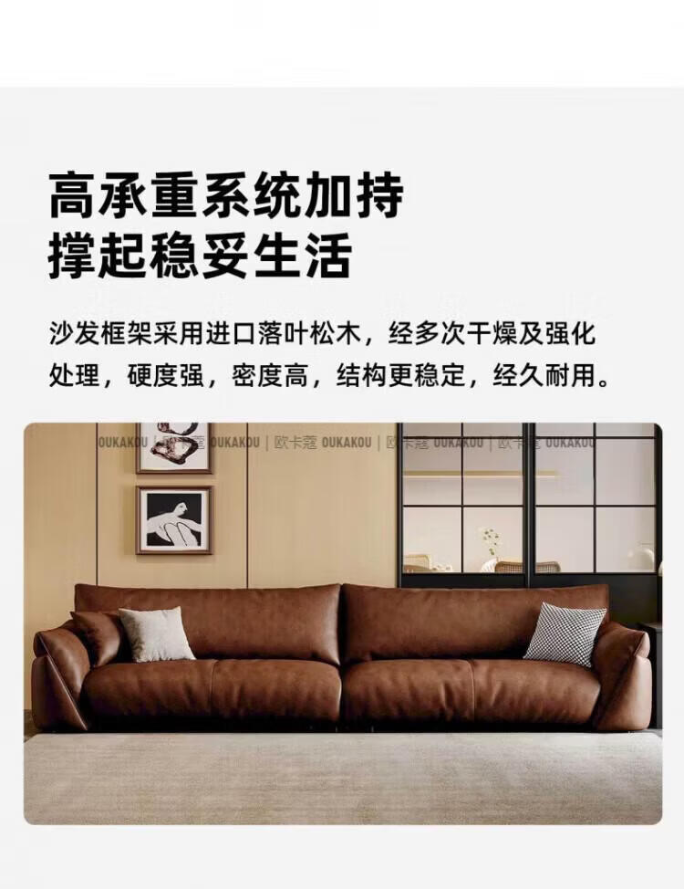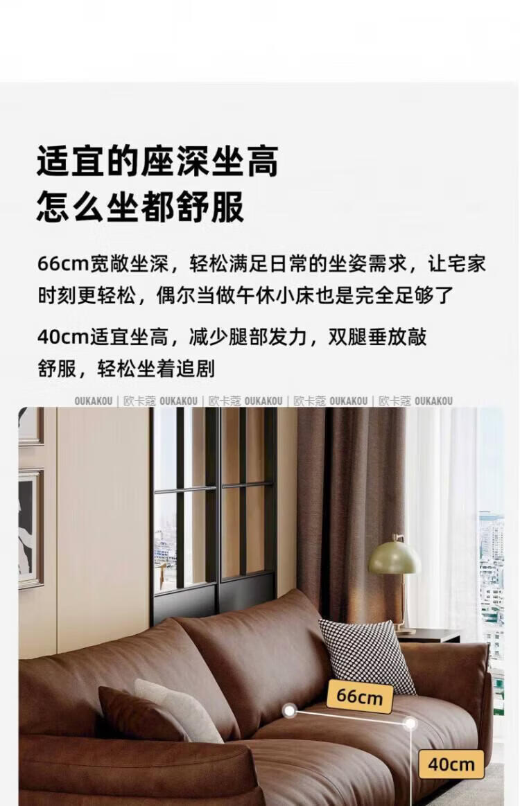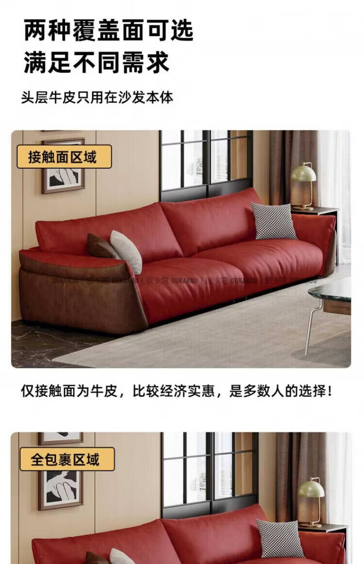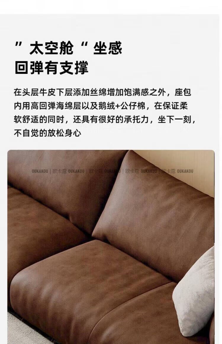 欧卡蔻2026新款沙发客厅真皮现代简约头层牛皮轻奢直排贵妃三人位沙发 (接触面真皮)焦糖色 170x98x84cm