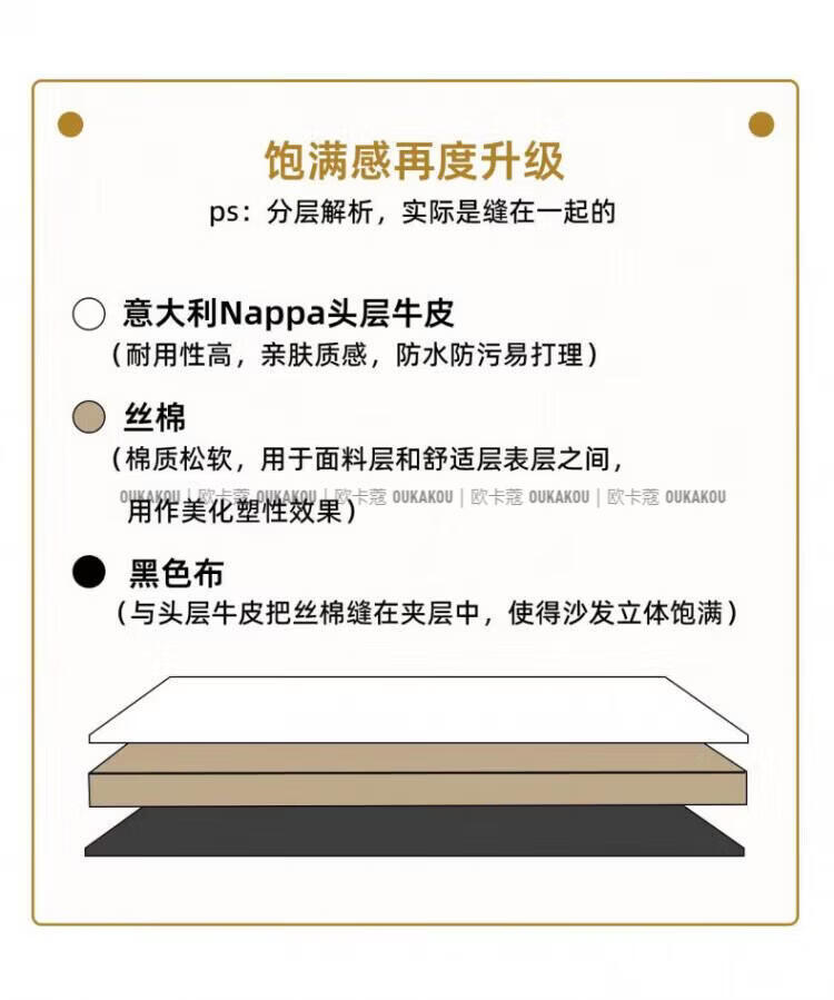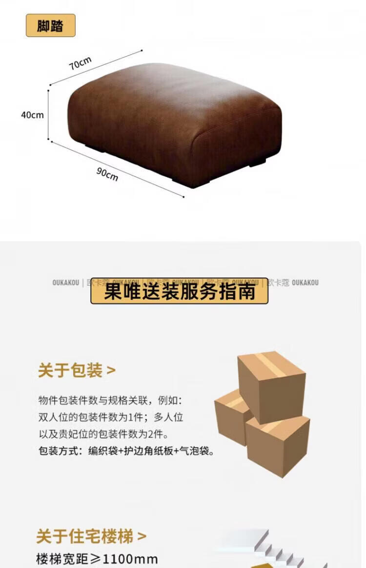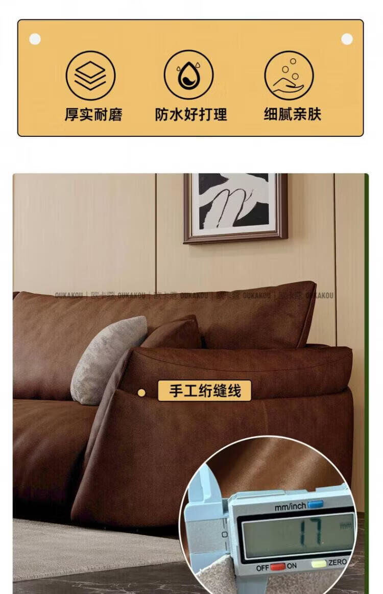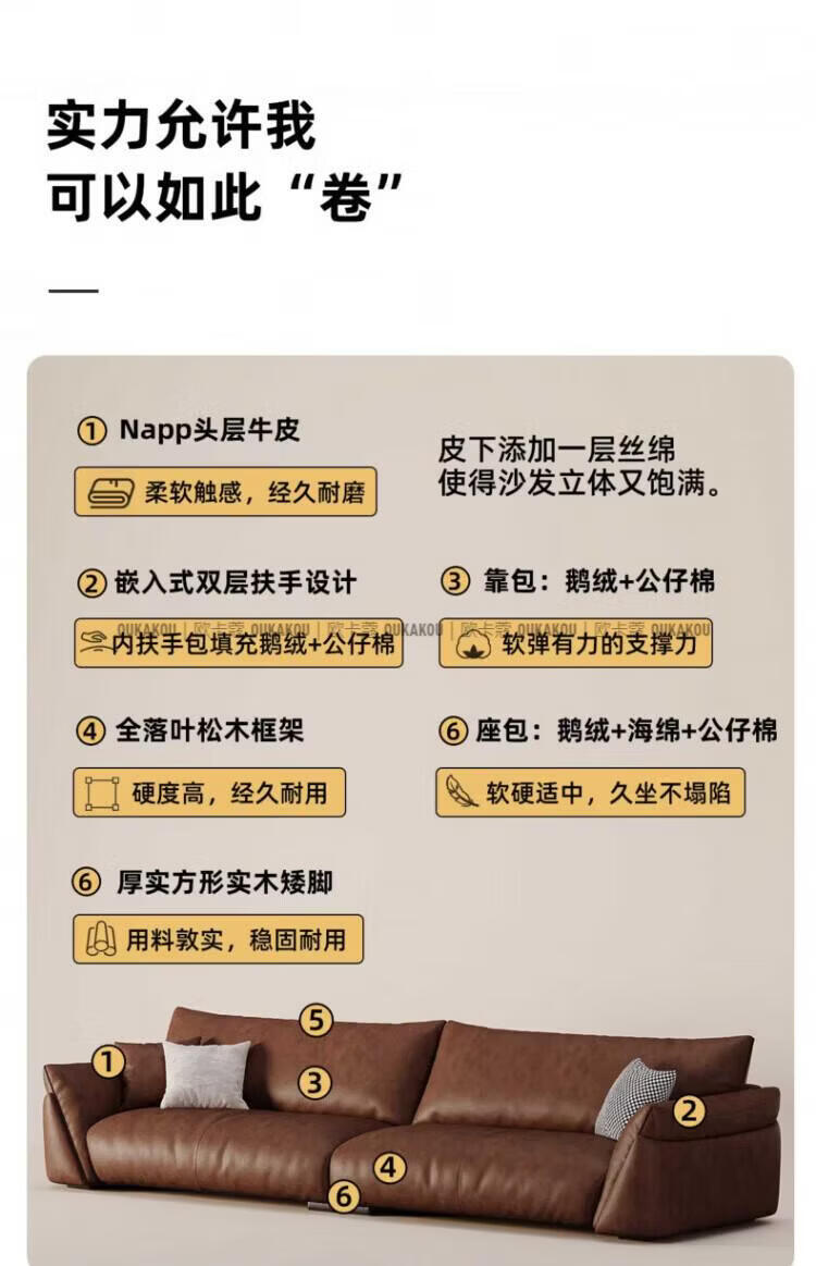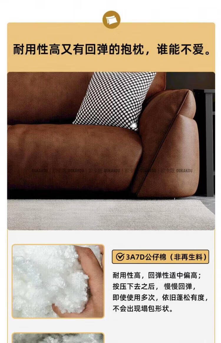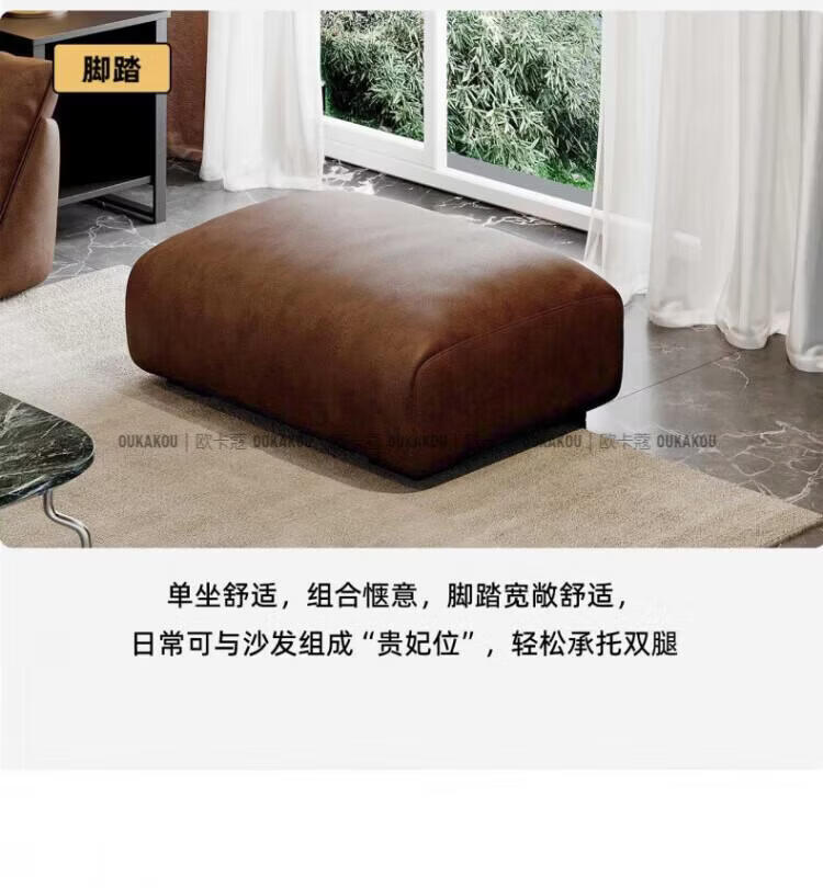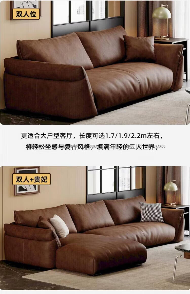 欧卡蔻2026新款沙发客厅真皮现代简约头层牛皮轻奢直排贵妃三人位沙发 (接触面真皮)焦糖色 170x98x84cm