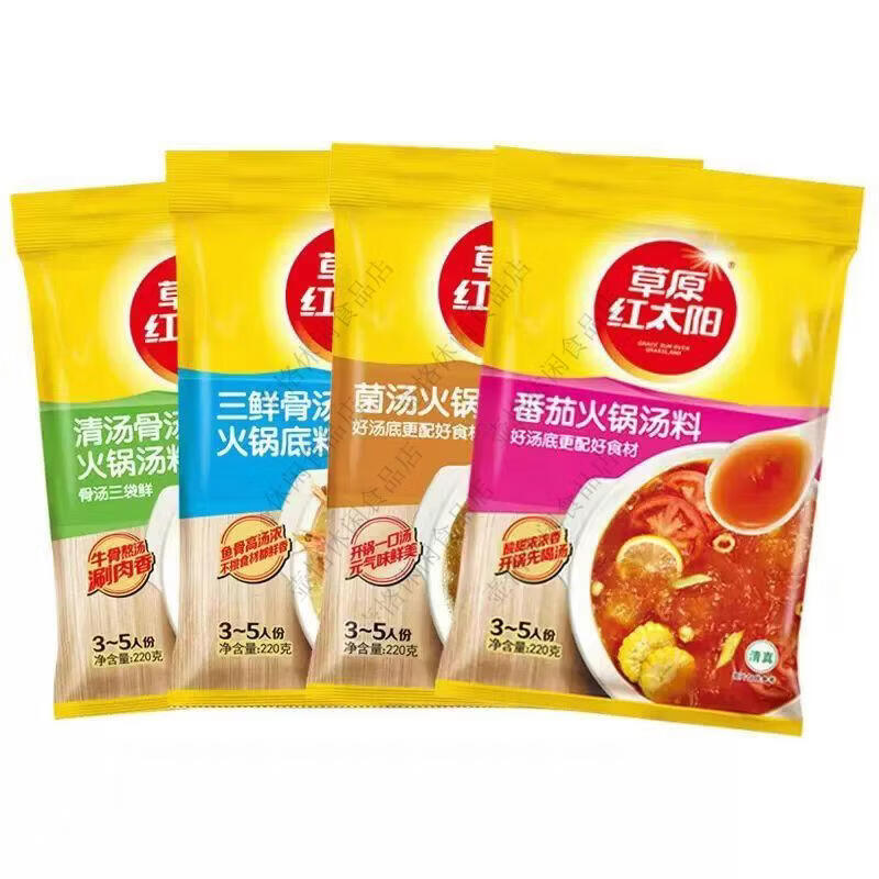 草原红太阳红太阳清汤骨汤火锅底料清真菌骨汤番茄麻辣牛油菌汤老北京火锅料 微辣香汤220g*1袋临期特惠