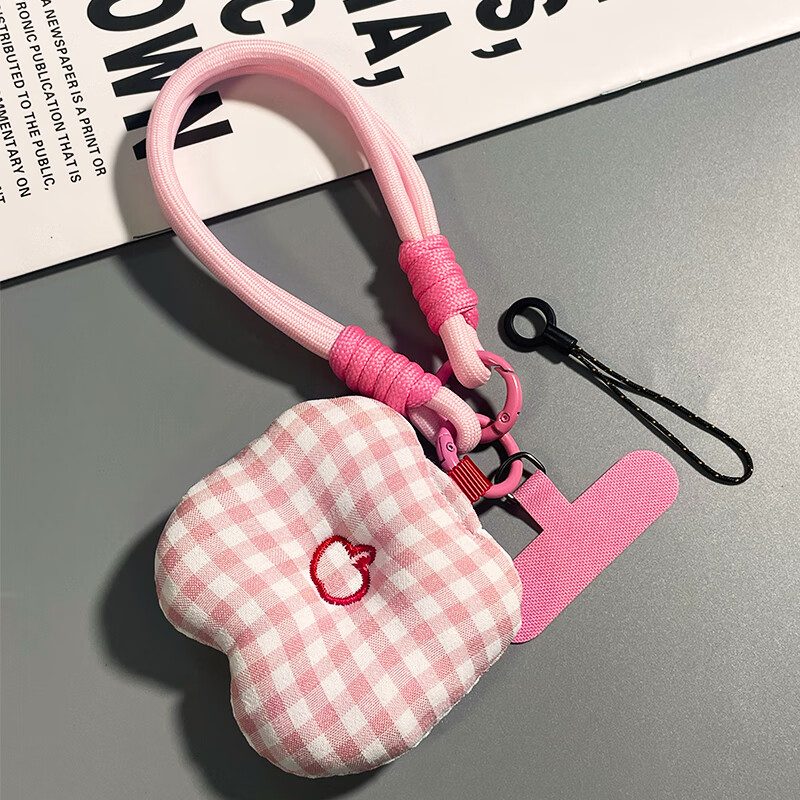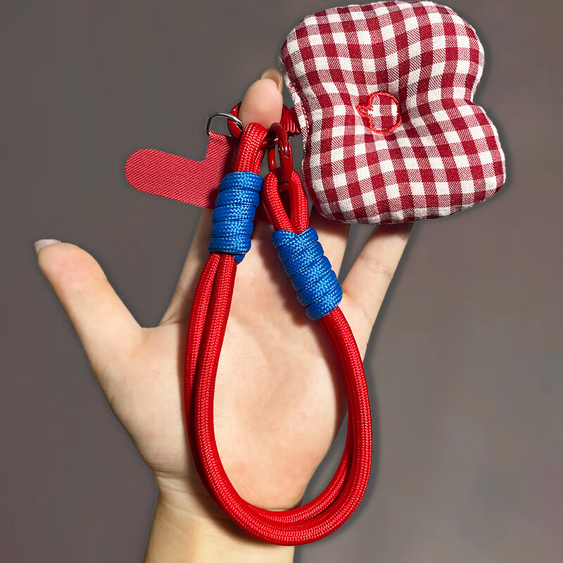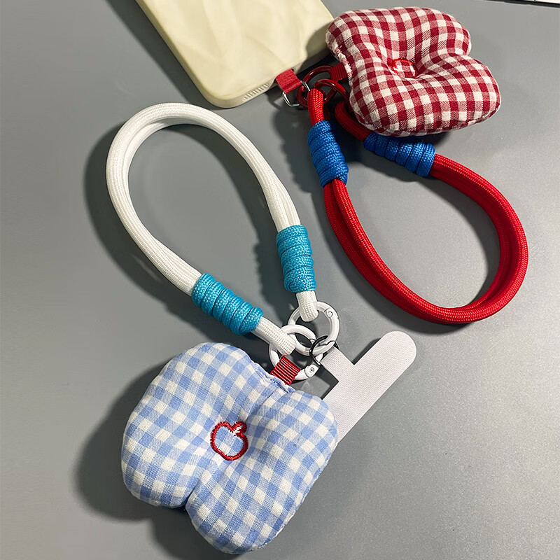 【厂家直供】手机挂绳新年红短款绳格子挂件便携钥匙扣手机壳挂绳防丢手机链 【新年红】苹果方块挂绳+红色夹片+小吊绳