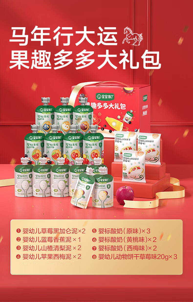 宝宝馋了年货礼盒零食礼盒果汁果泥酸奶礼盒婴幼儿辅食出行辅食佐餐囤货 婴标果泥 100g*10袋 【组合装】
