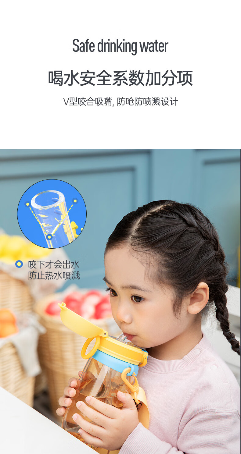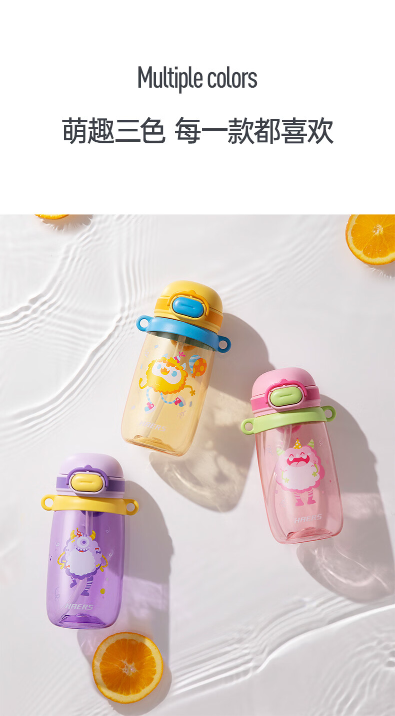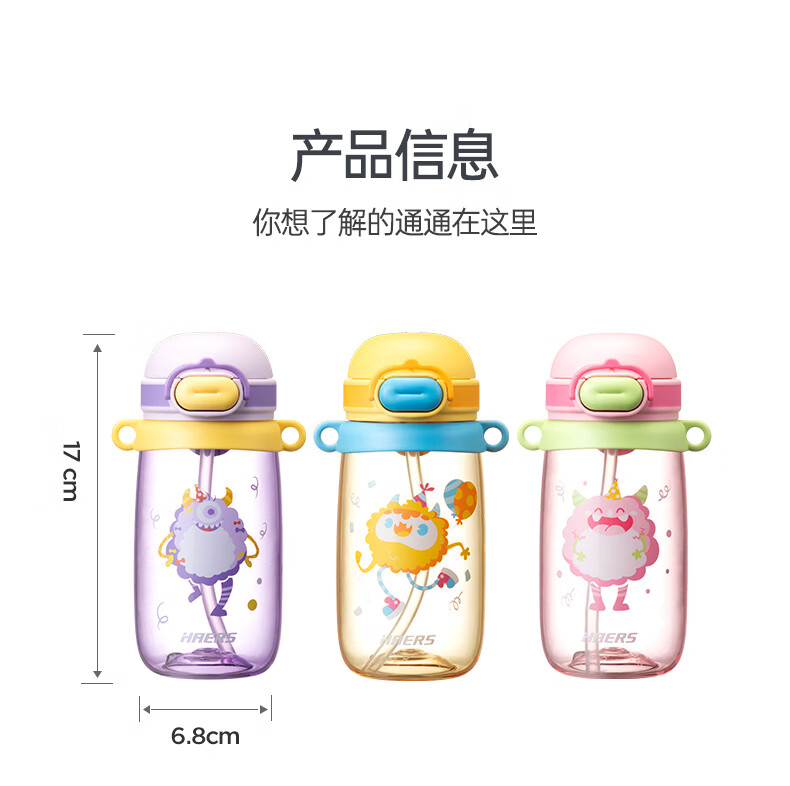 哈尔斯(HAERS)儿童吸管塑料杯宝宝水杯幼儿园新年礼物饮水杯专用水壶 紫色500ml