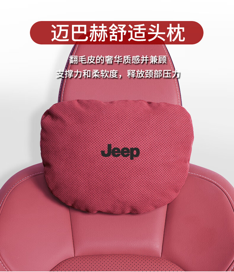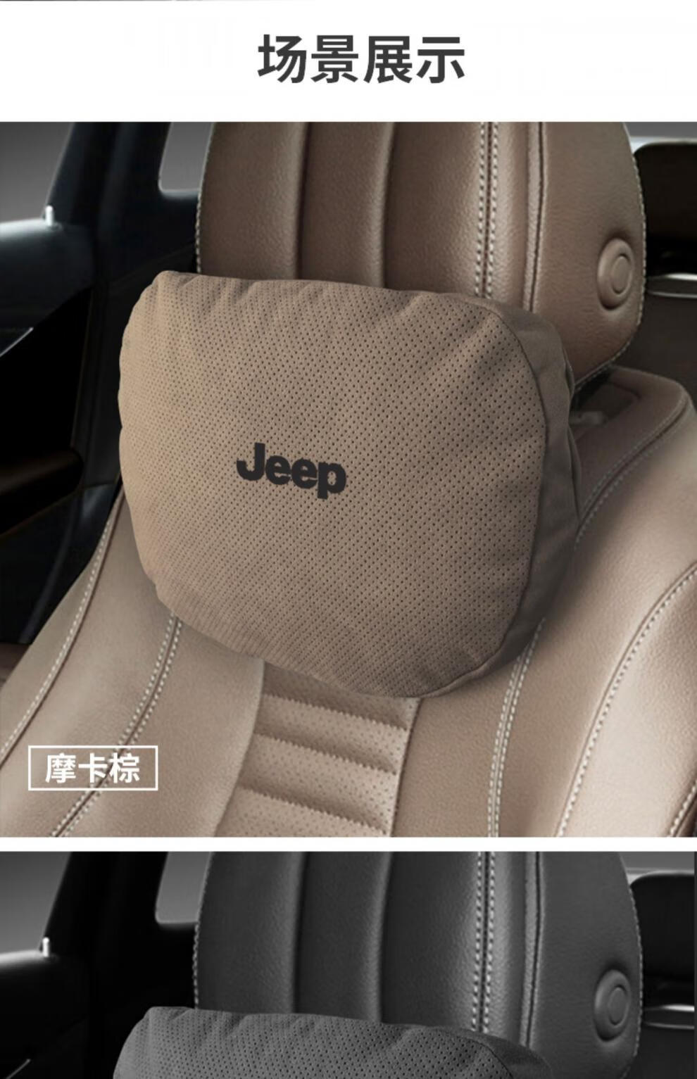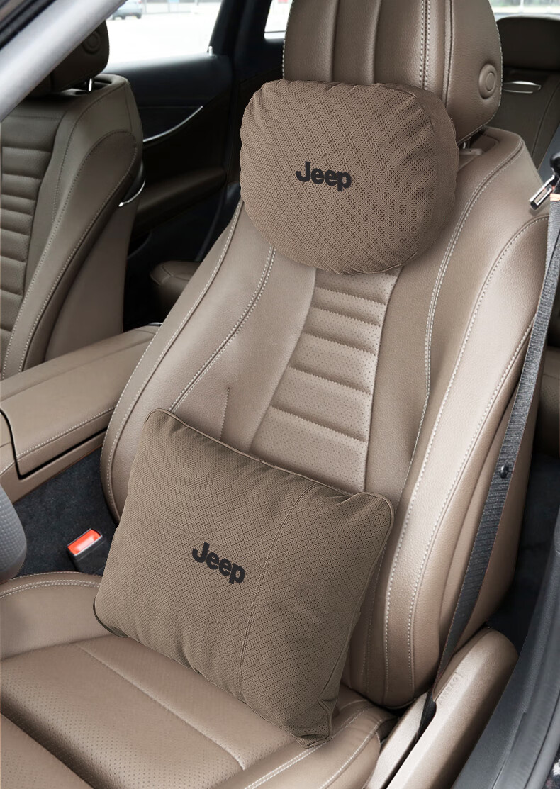 赋行适用吉普jeep指南者自由光自由侠迈巴赫护颈枕头枕汽车用车载座椅 Jeep-米色头枕+腰靠(一套装)
