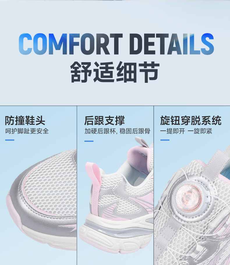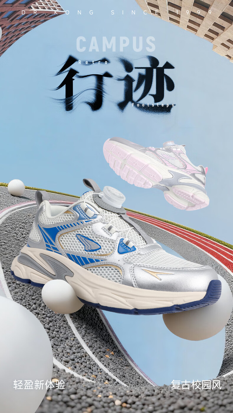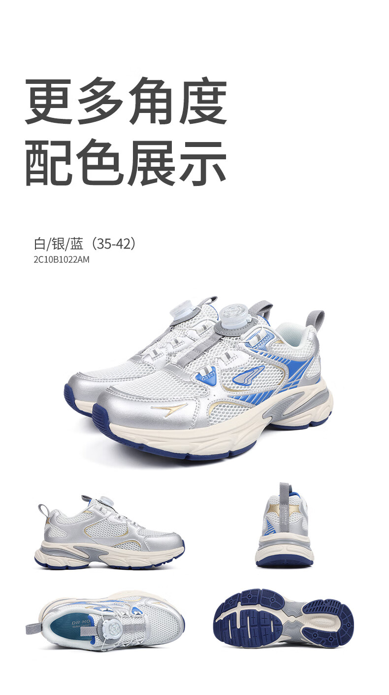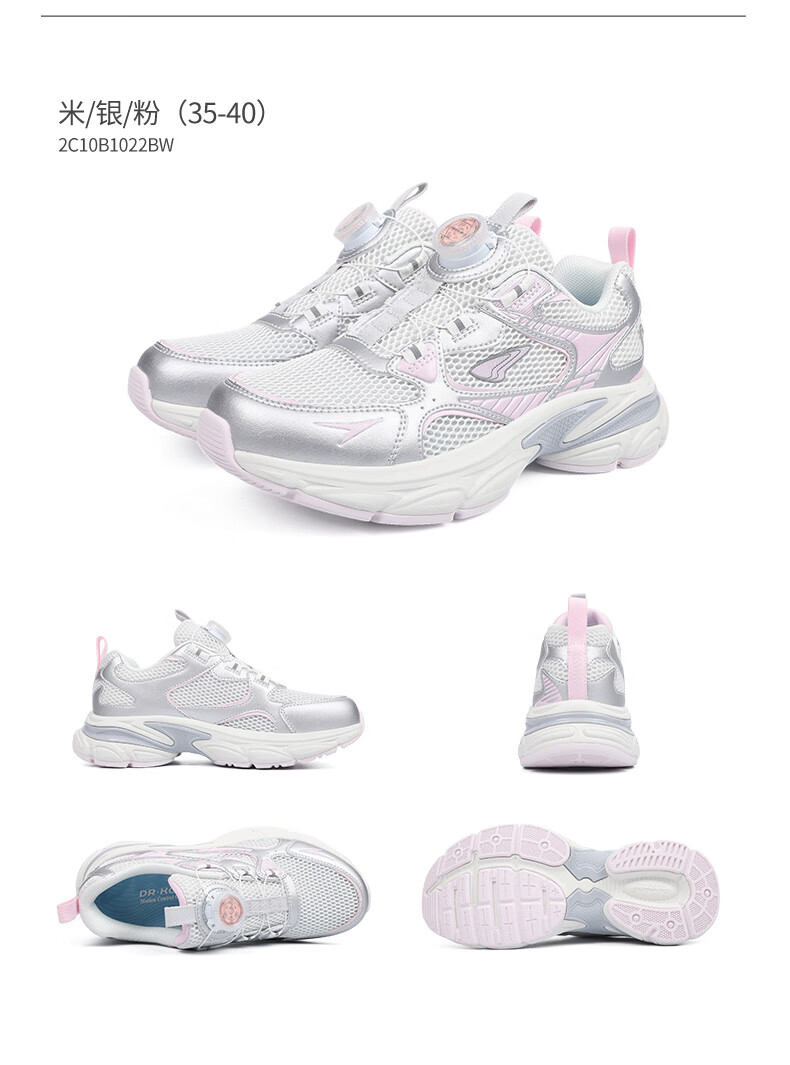 江博士(DR·KONG)春季中大男女童休闲儿童鞋 免系旋钮扣儿童运动鞋 米/银/粉 38 脚长约23.6-24.2