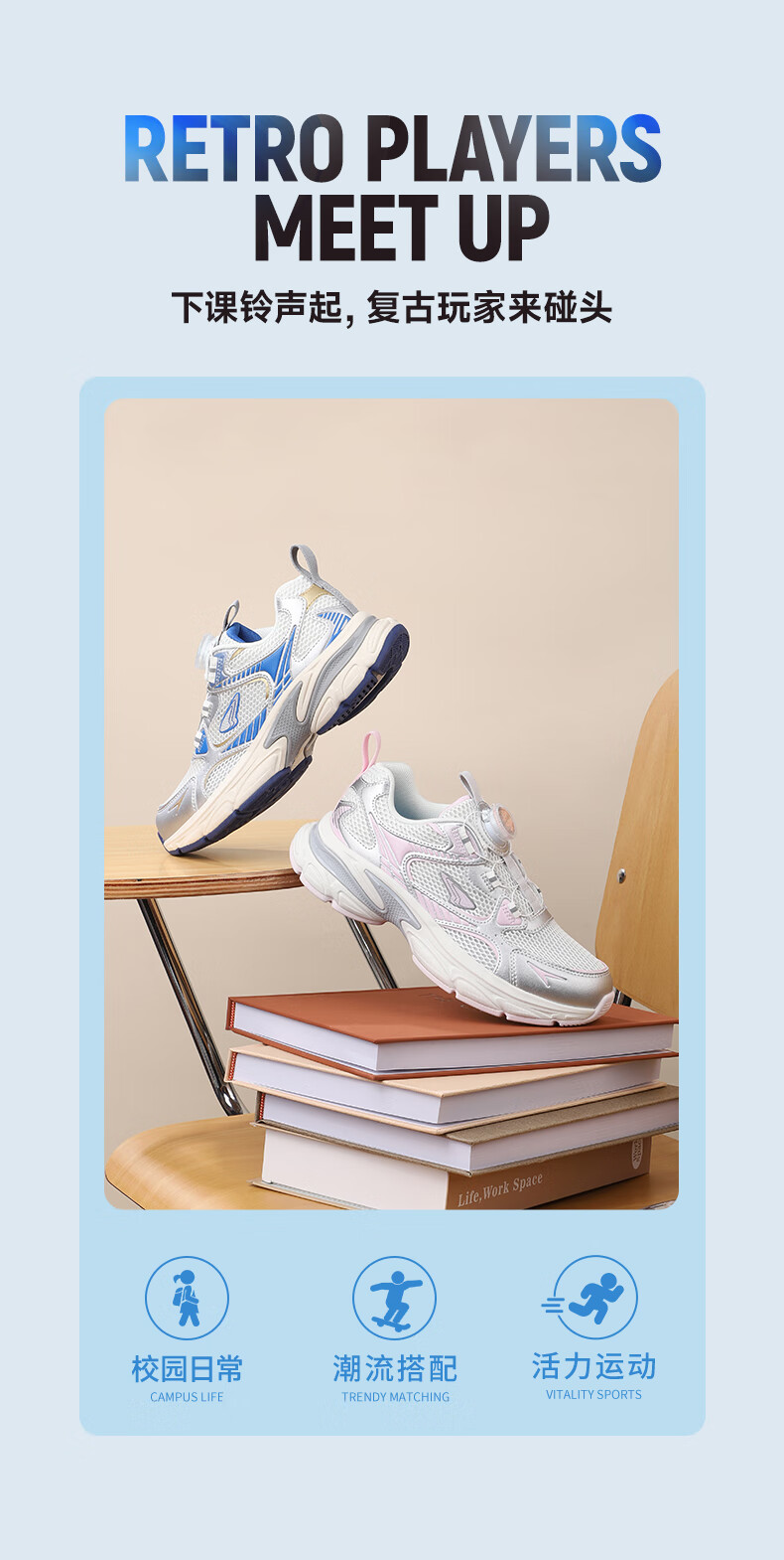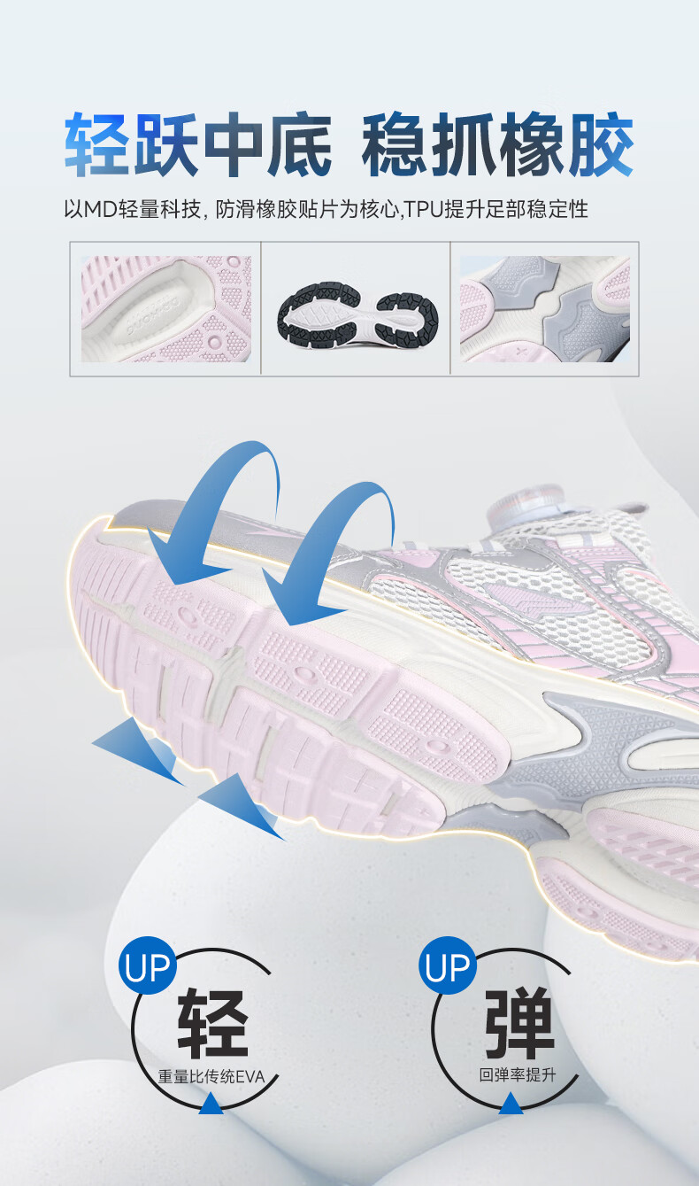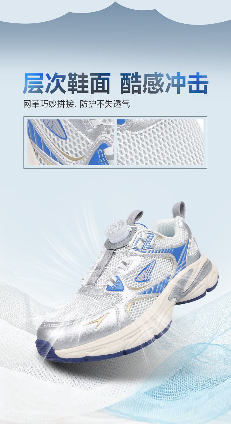 江博士(DR·KONG)春季中大男女童休闲儿童鞋 免系旋钮扣儿童运动鞋 米/银/粉 38 脚长约23.6-24.2