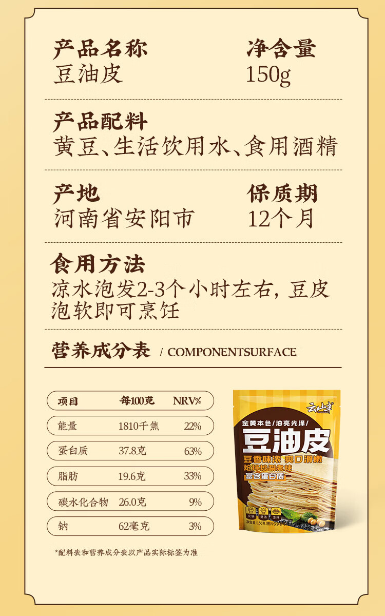 云山半豆油皮150g 南北干货 手工制作油豆皮 腐竹皮 干豆腐皮火锅食材