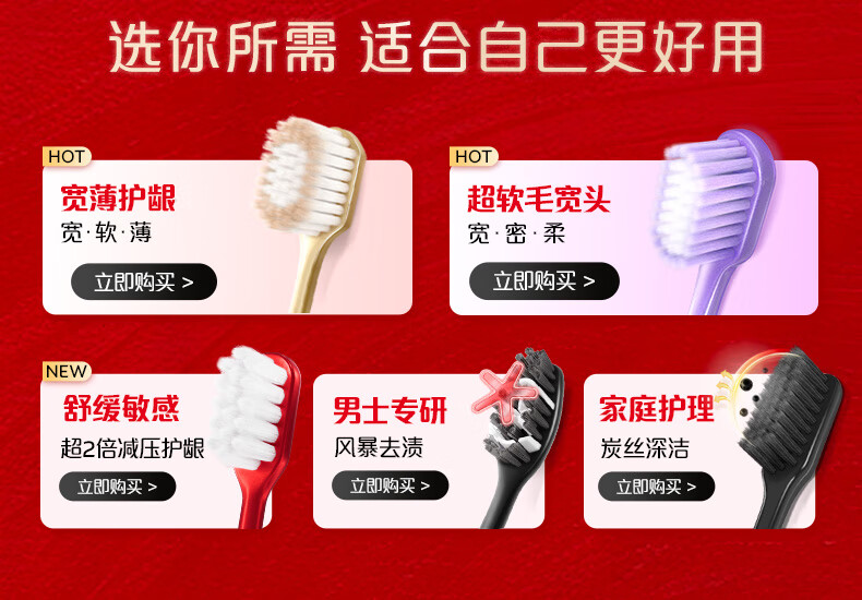 HERM'S钻石宽头牙刷软毛情侣家用成人口腔护龈清洁超细密丝牙刷 山姆超市-护龈钻石牙刷 6支