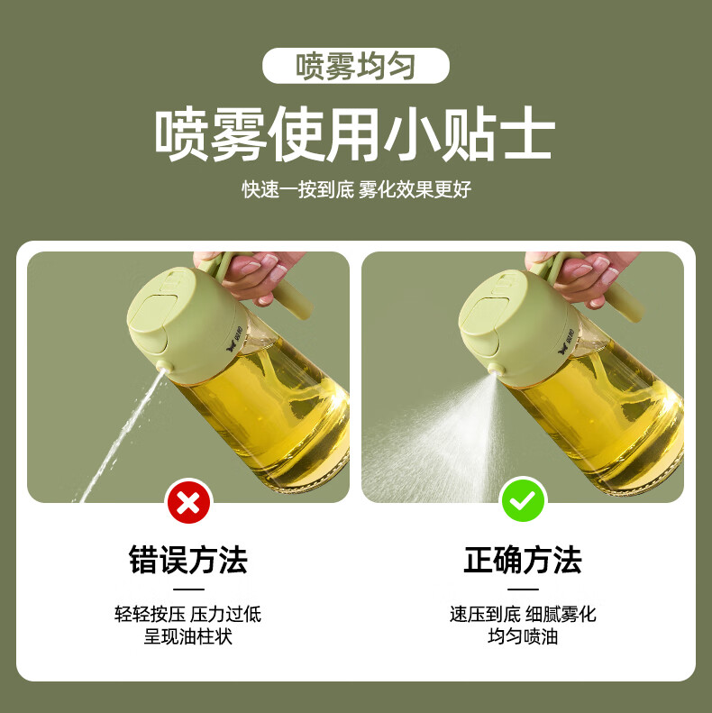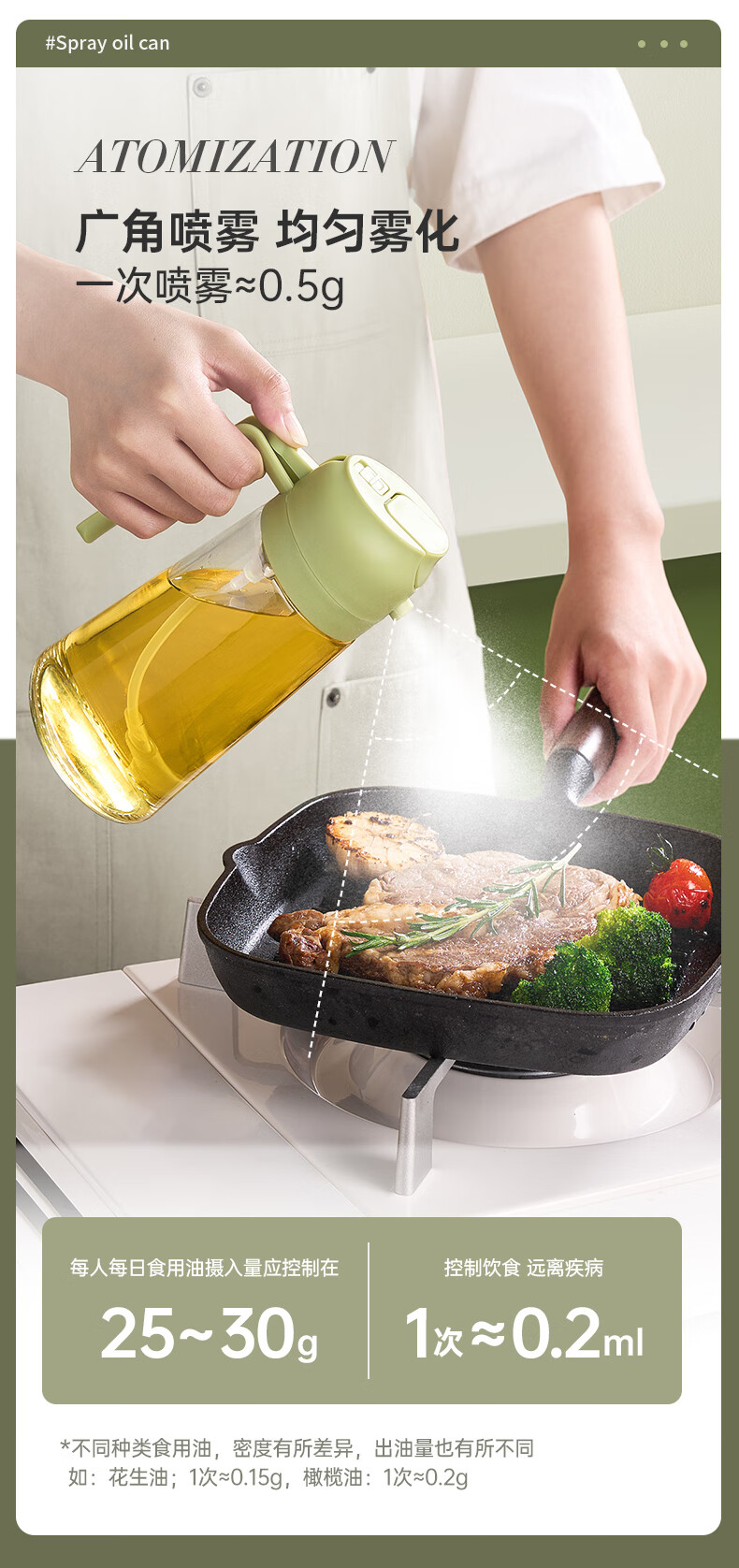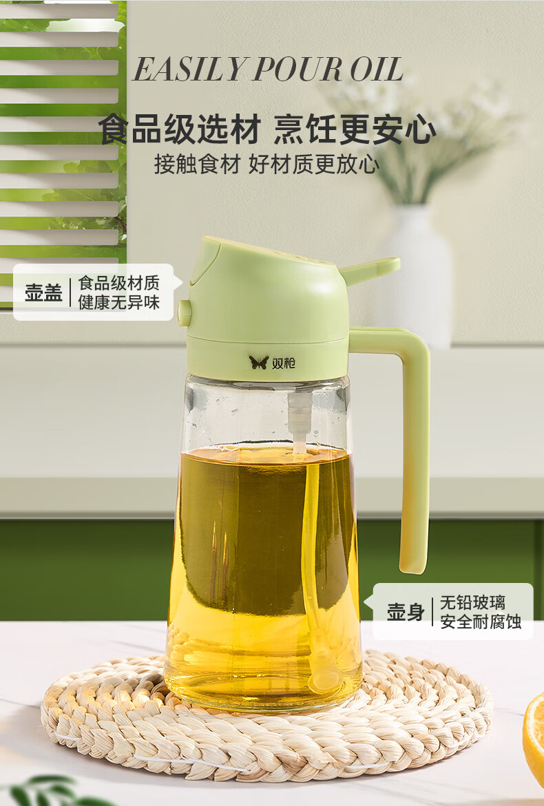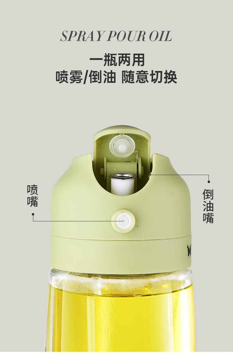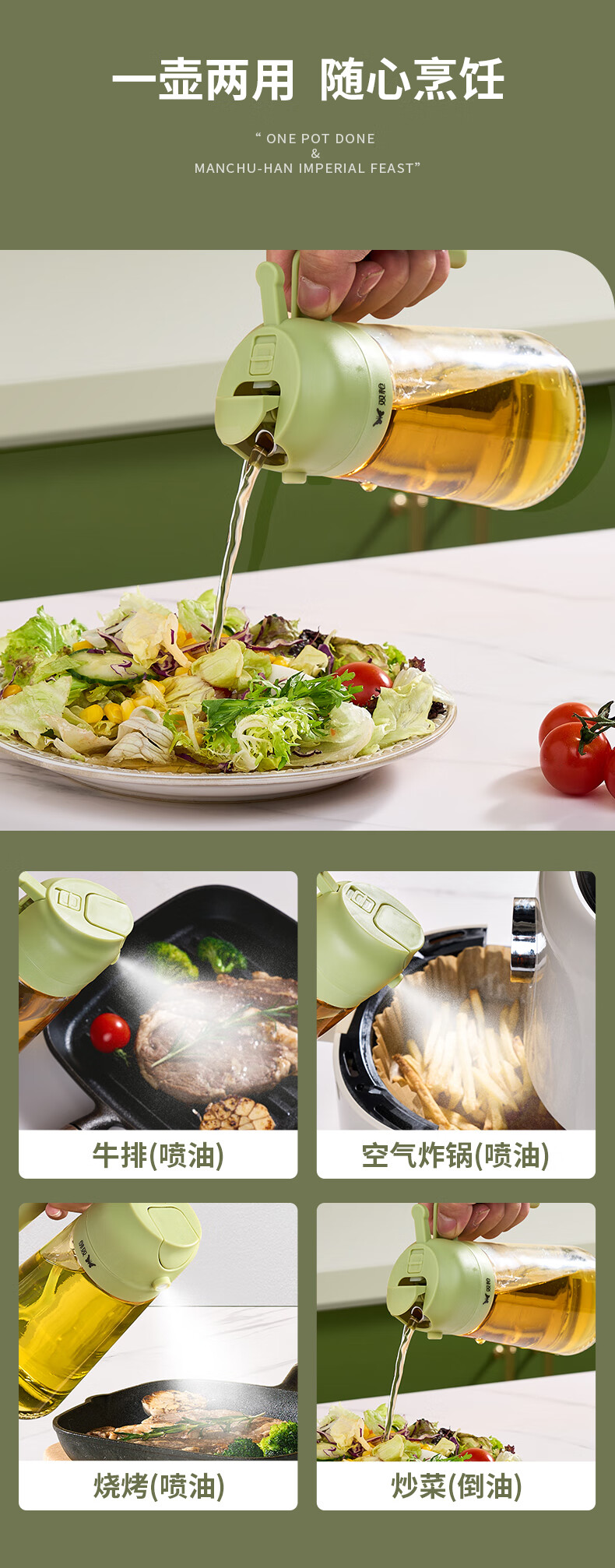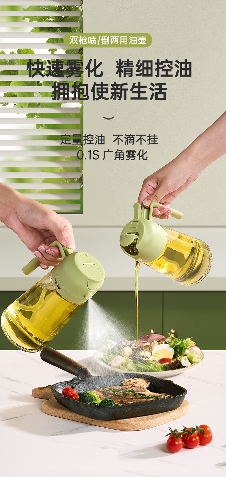 双枪油壶喷油壶 倒油喷油一体食用油玻璃油壶厨房家用不挂油 橄榄绿