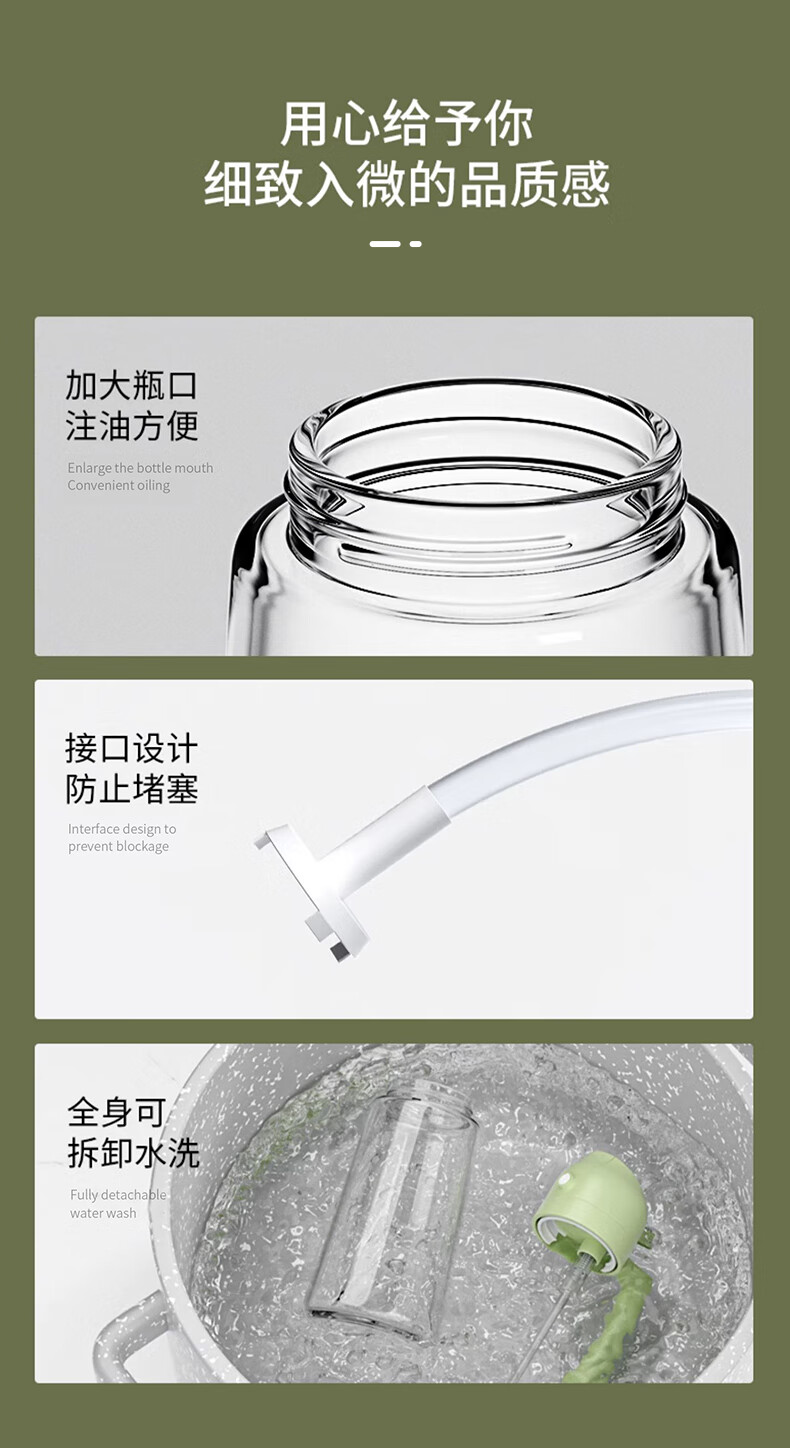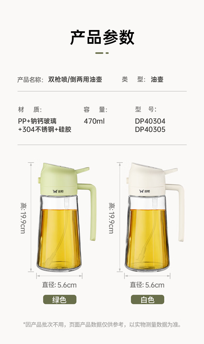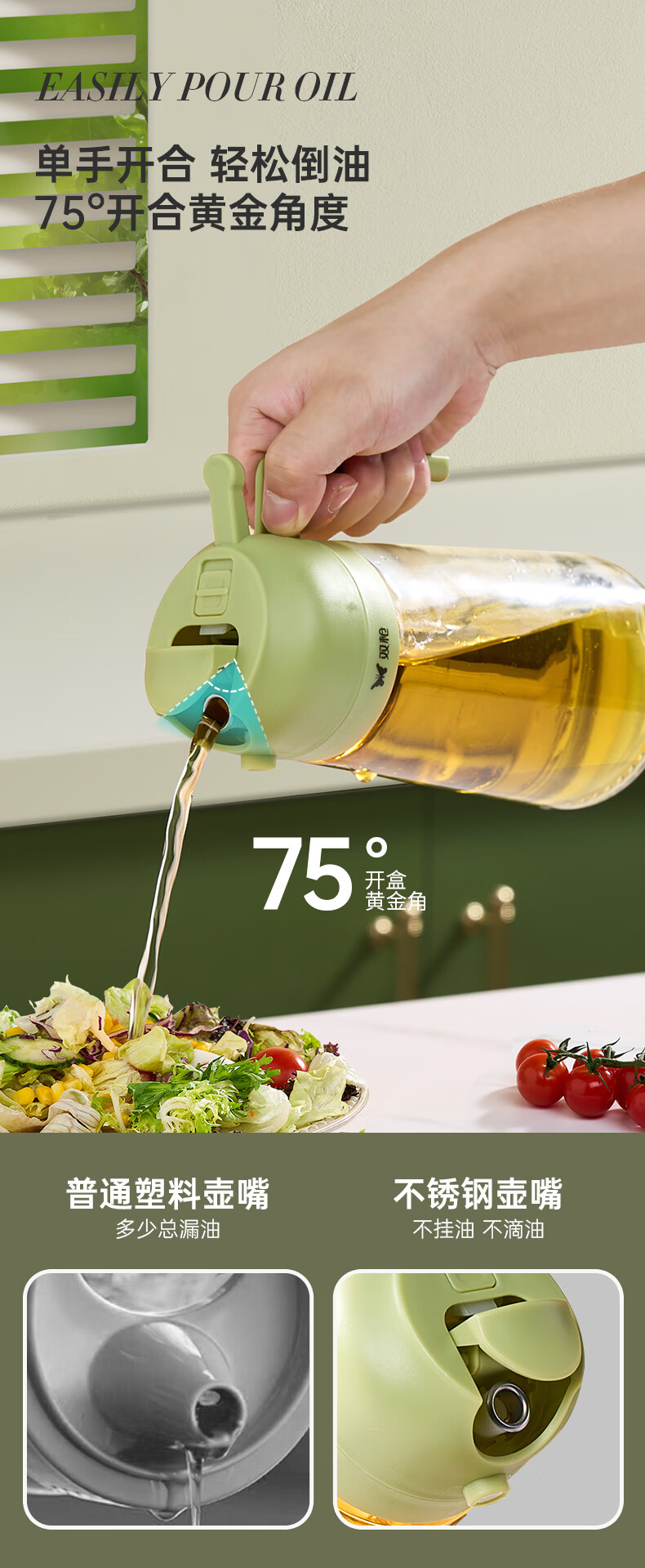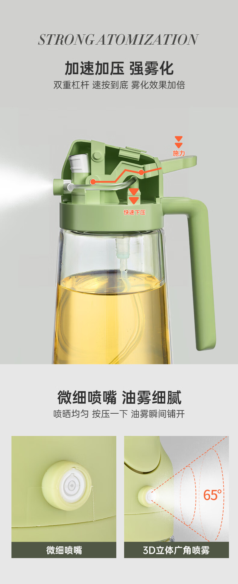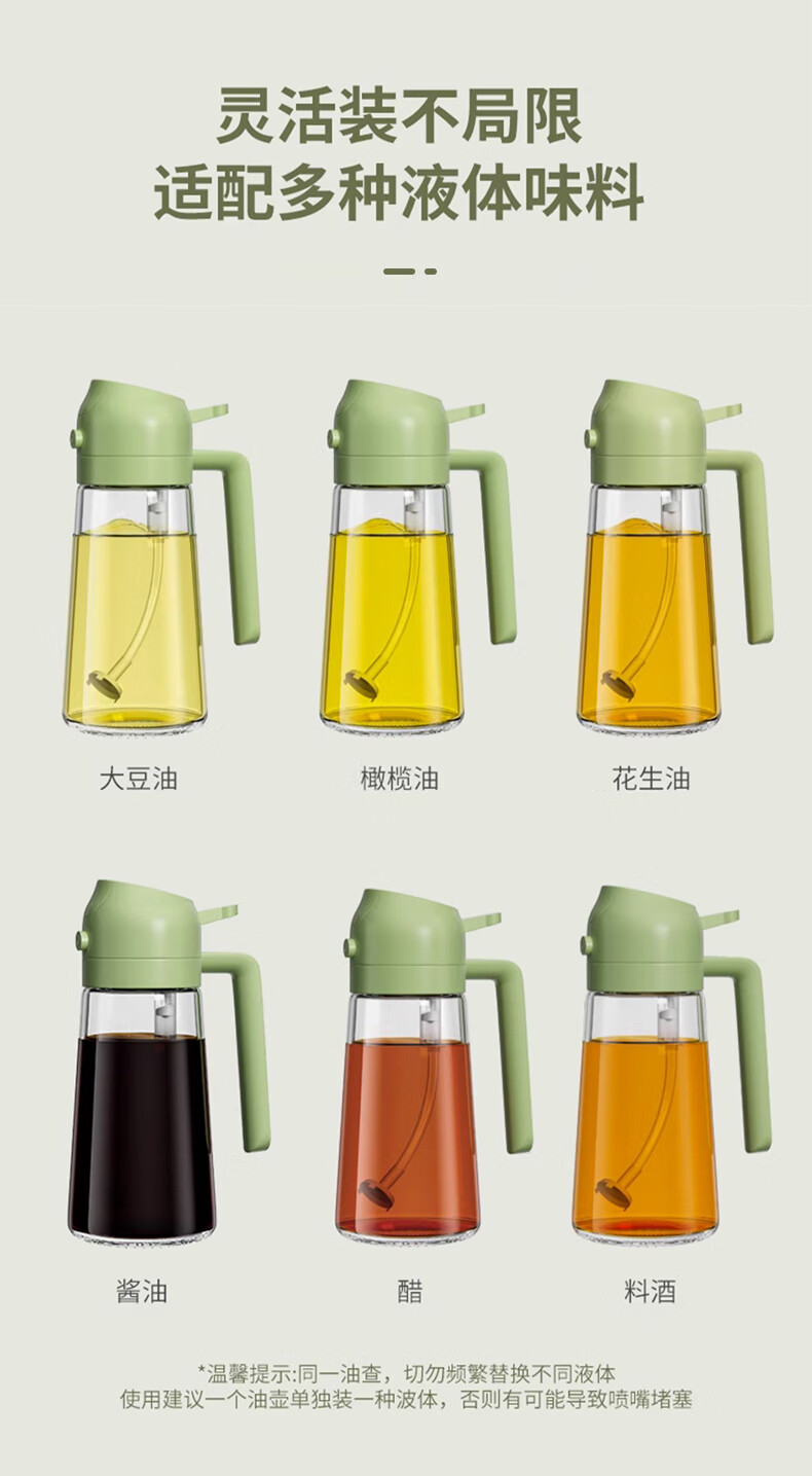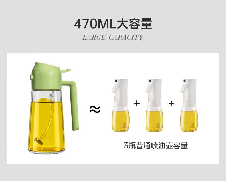 双枪油壶喷油壶 倒油喷油一体食用油玻璃油壶厨房家用不挂油 橄榄绿