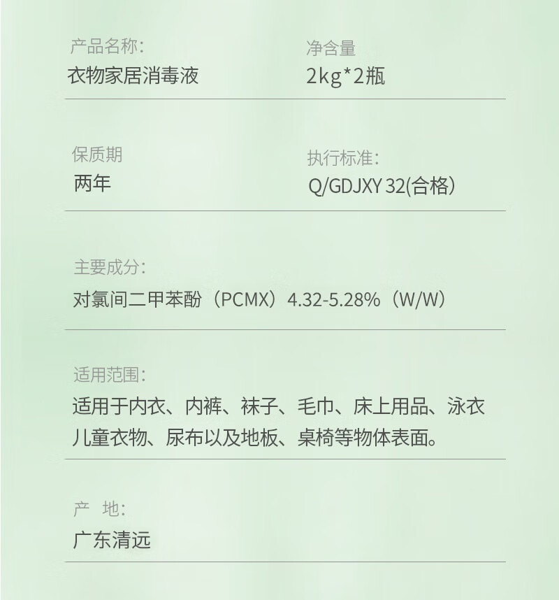京东京造 消毒液2kg×2瓶 衣物消毒水家居宠物环境除菌除螨杀菌除菌液松香