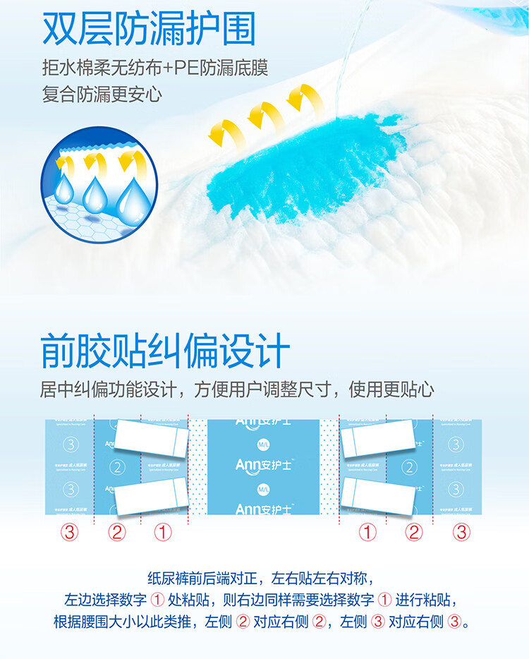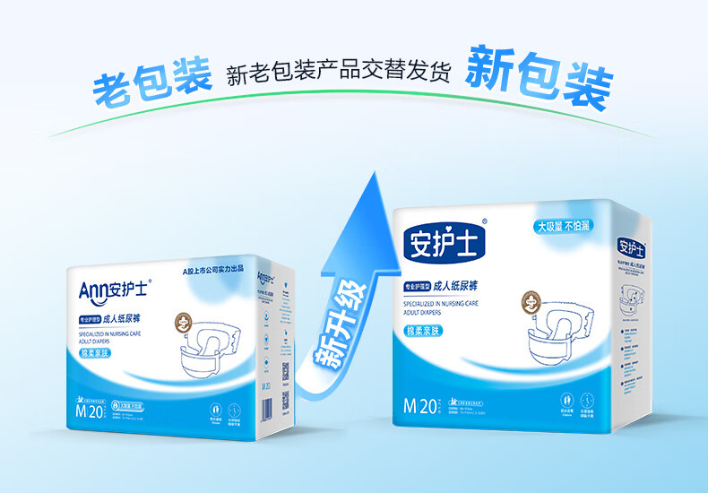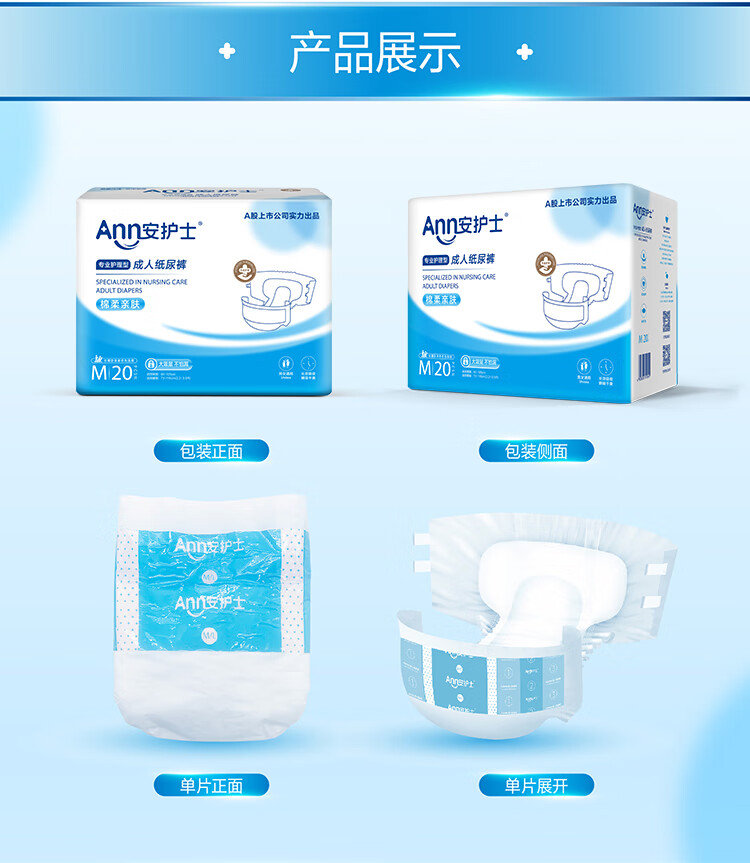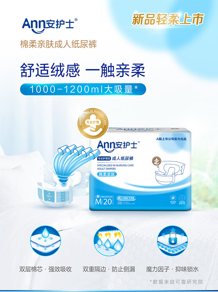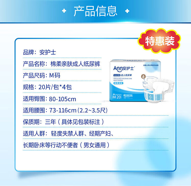 安护士棉柔亲肤成人纸尿裤 M80片(臀围80-105cm)粘贴式老年人尿不湿