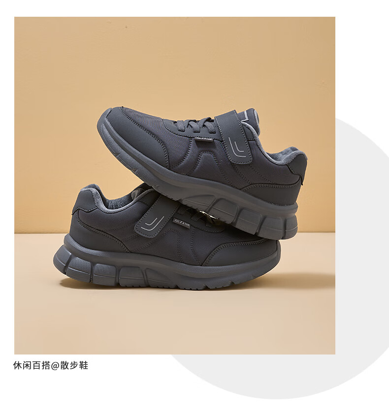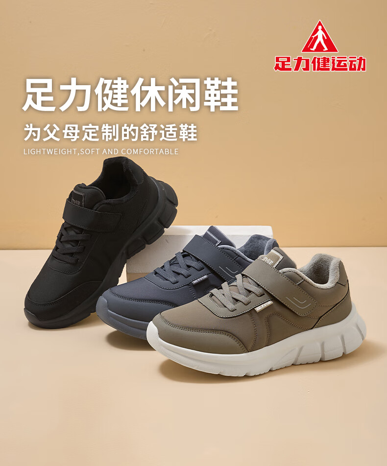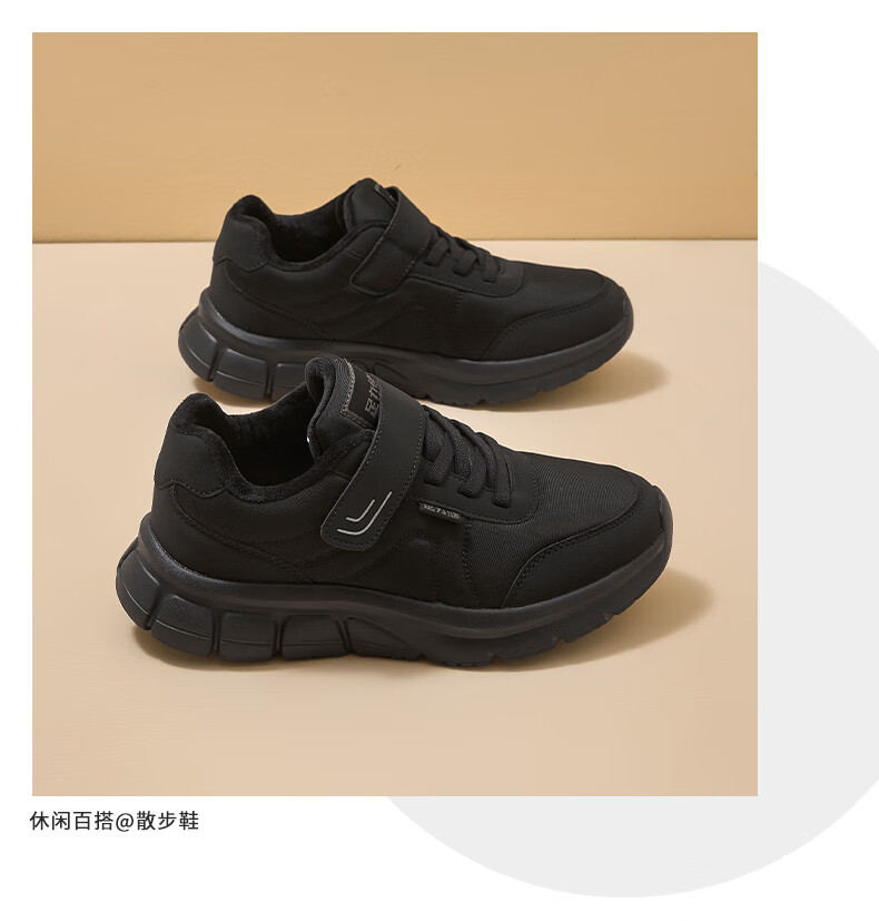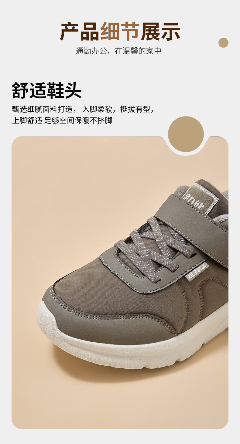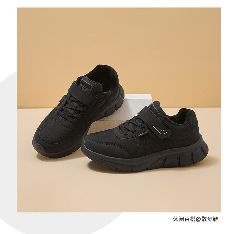 足力健防滑老人鞋加厚保暖棉鞋冬季防寒雪地靴加绒爸爸鞋9160 黑色 41