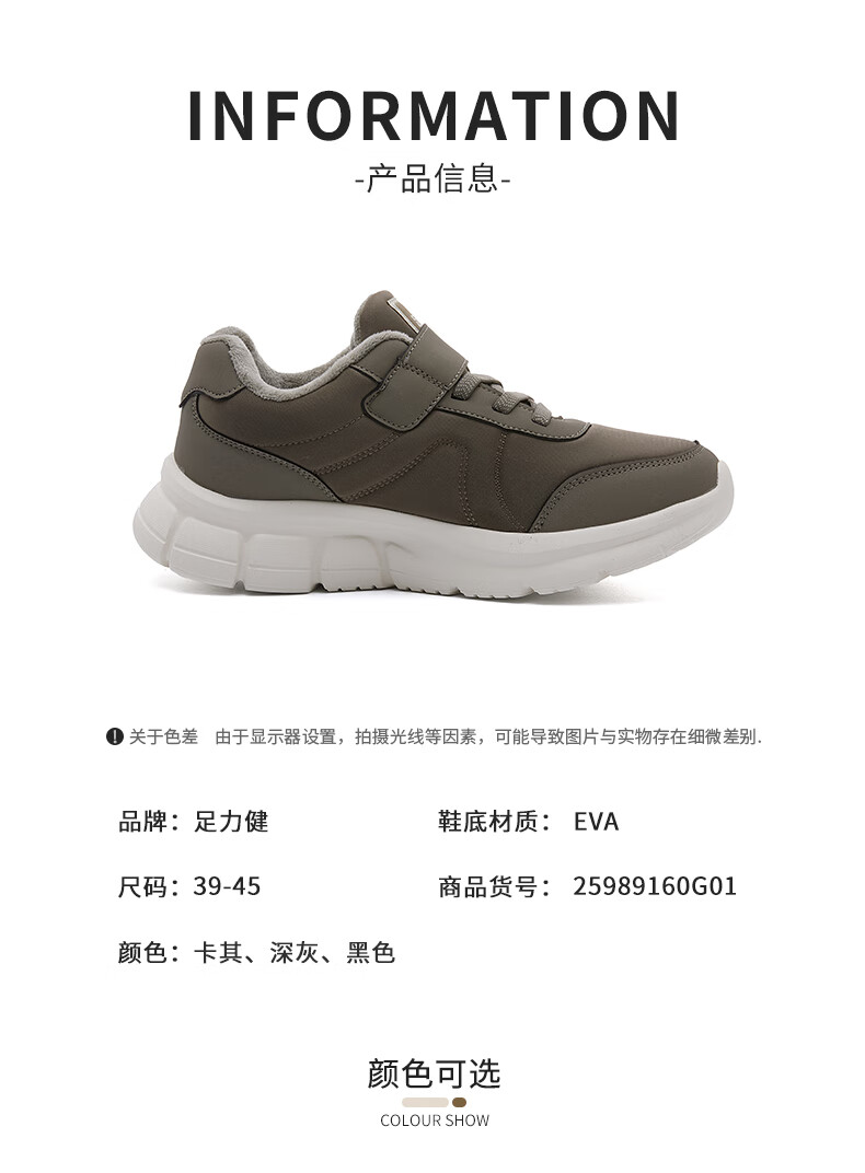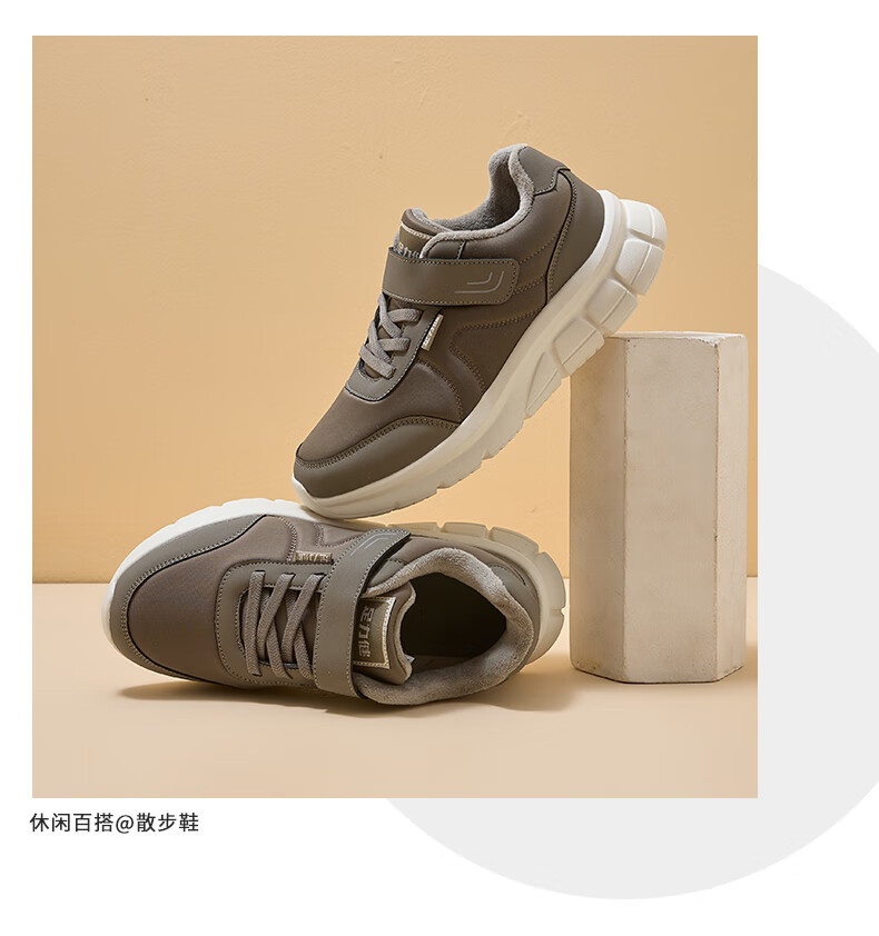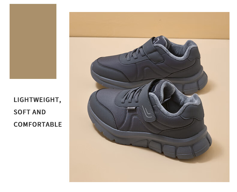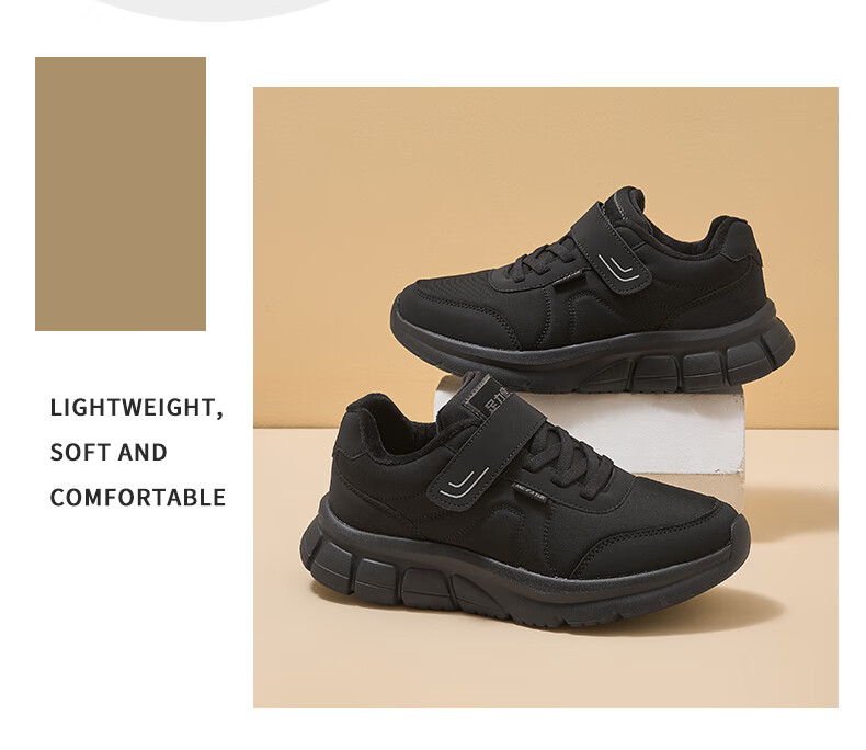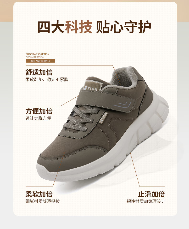 足力健防滑老人鞋加厚保暖棉鞋冬季防寒雪地靴加绒爸爸鞋9160 黑色 41