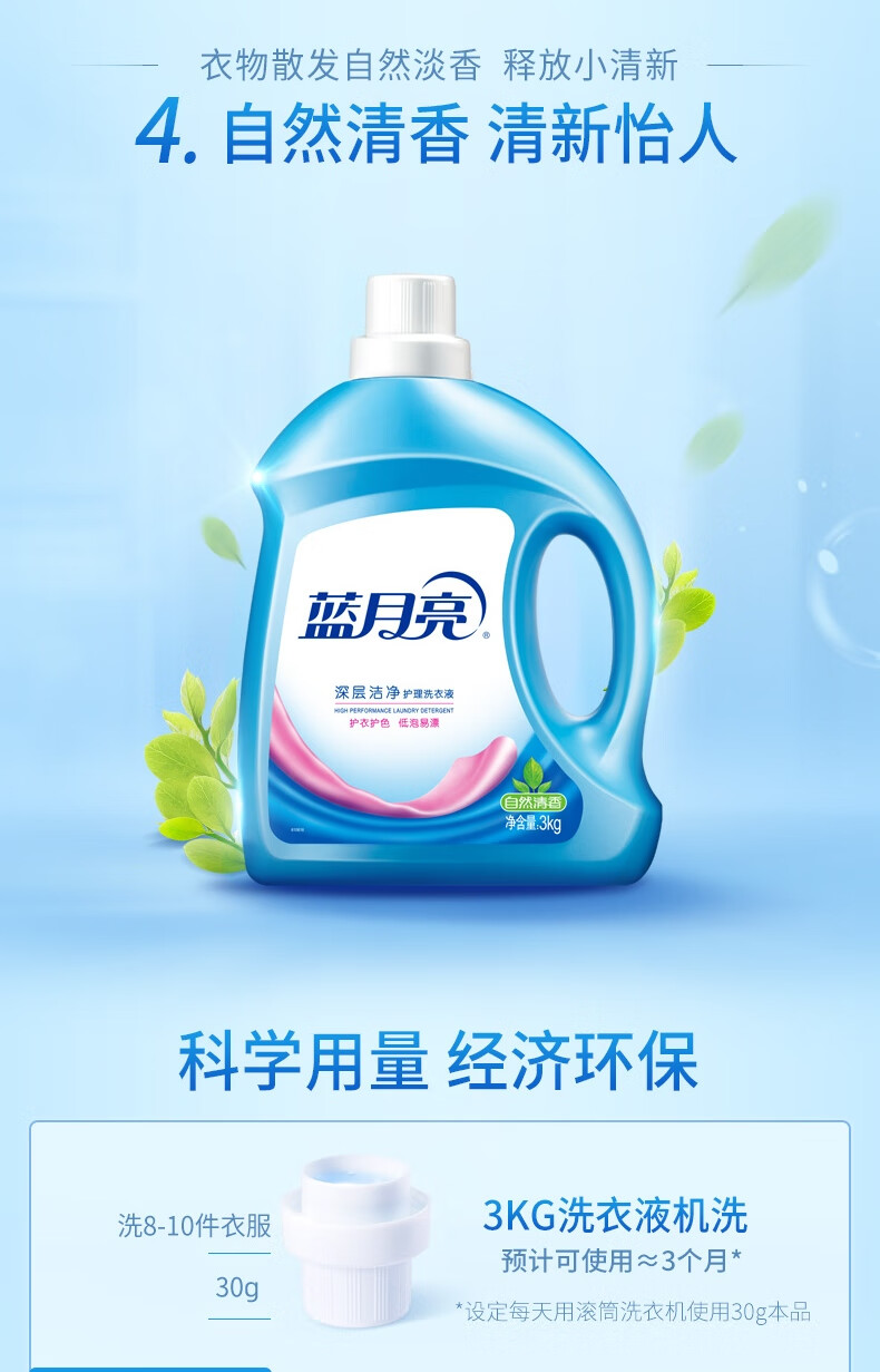 蓝月亮 洗衣液 机洗手洗 深层洁净 去污去油去渍 低泡易漂洗 自然清香 500g*1瓶