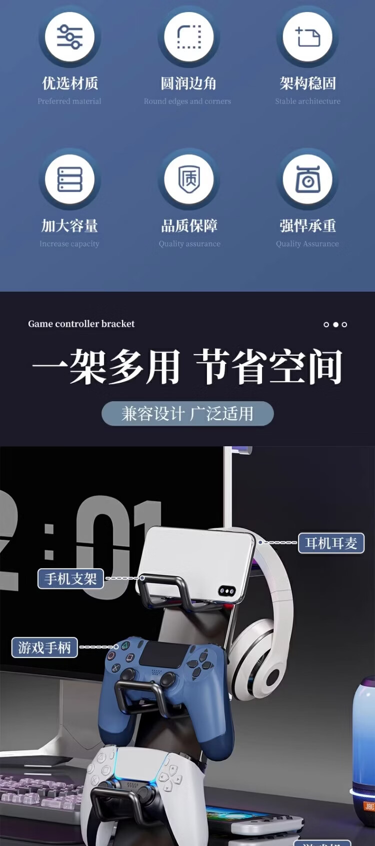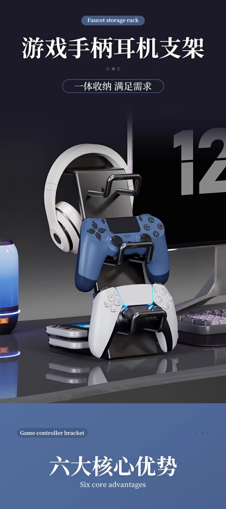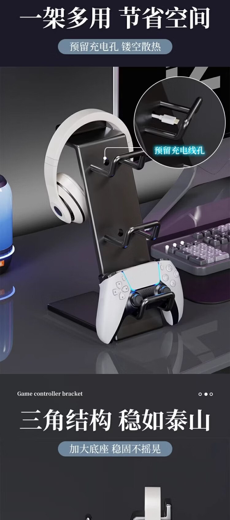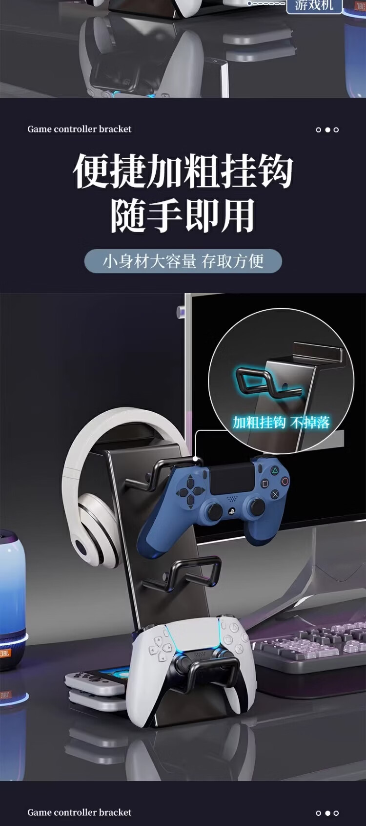 尔思家头戴式耳机支架电脑桌面置物架手柄桌面收纳宿舍好物显示器整理架 游戏手柄支架-黑色