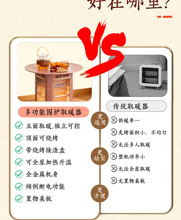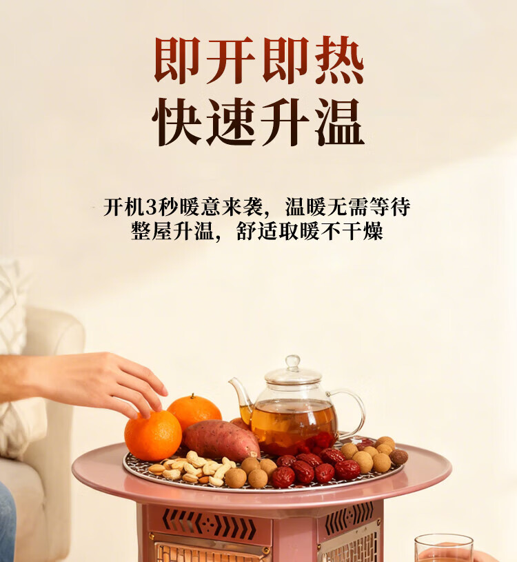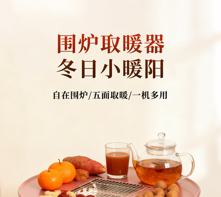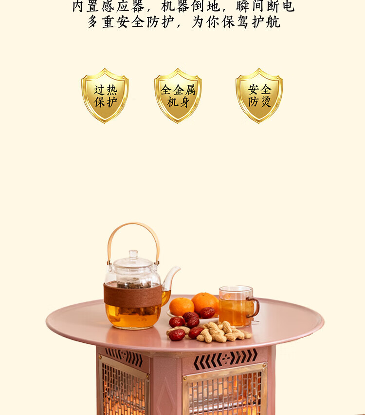 gosoo茶桌家用餐桌烧烤桌围炉煮茶桌烤炉 烤火炉取暖器 五面取暖炉火锅