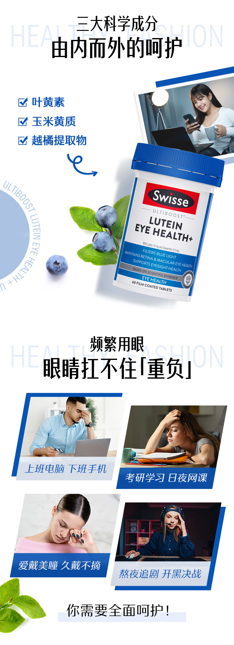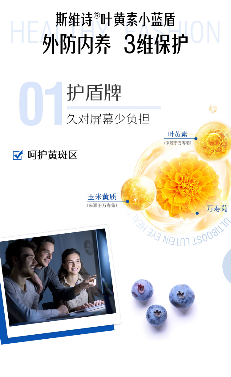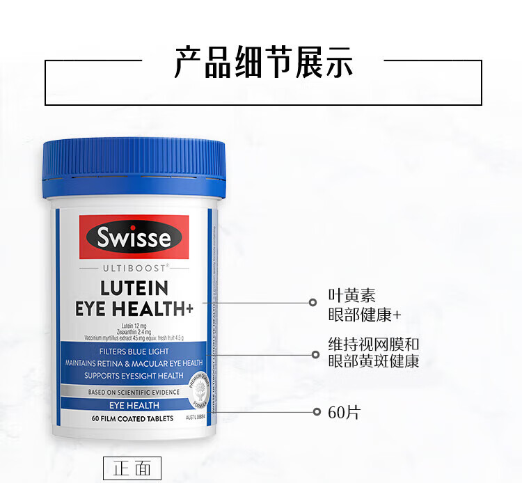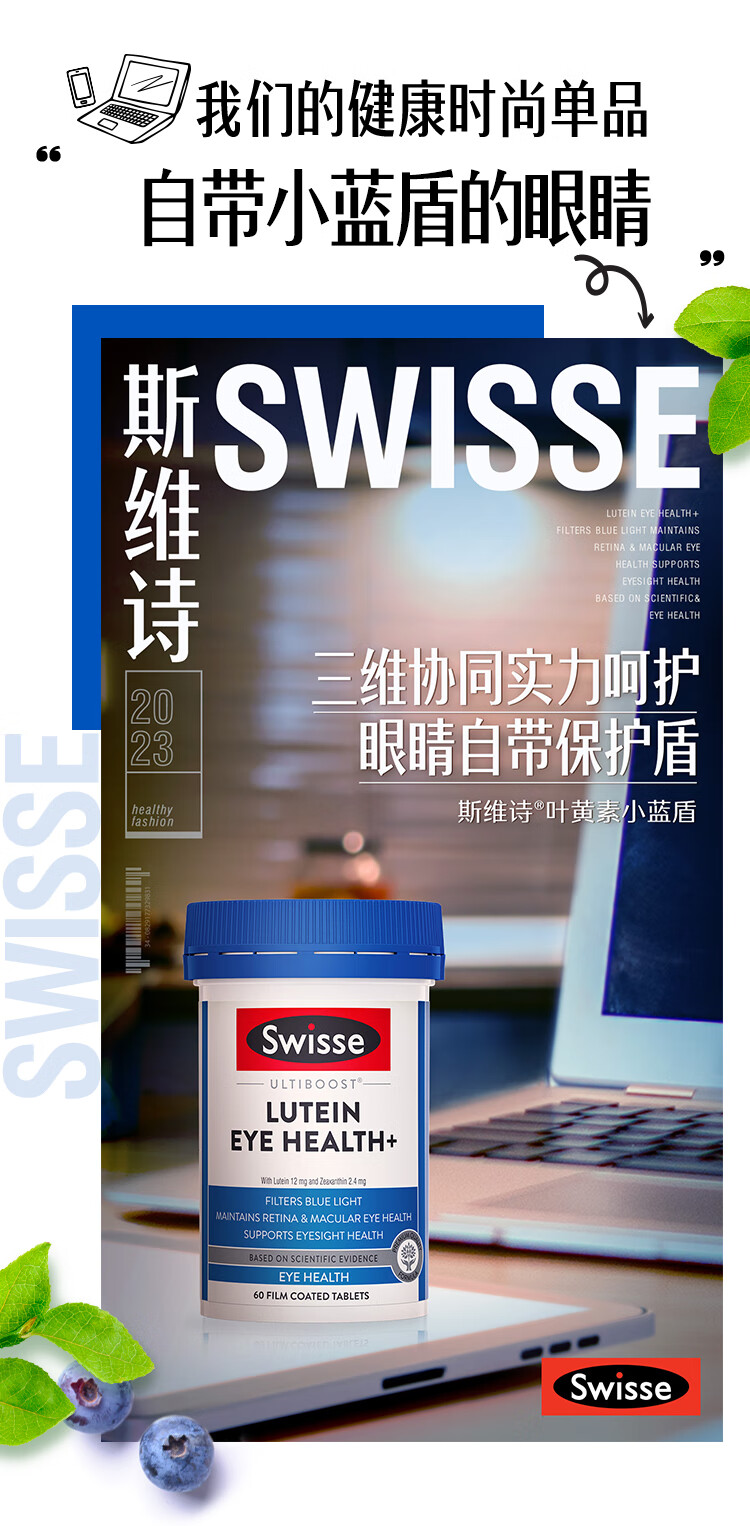 Swisse斯维诗 叶黄素小蓝盾成人护眼片 越橘蓝莓玉米黄质 护眼60片*2瓶