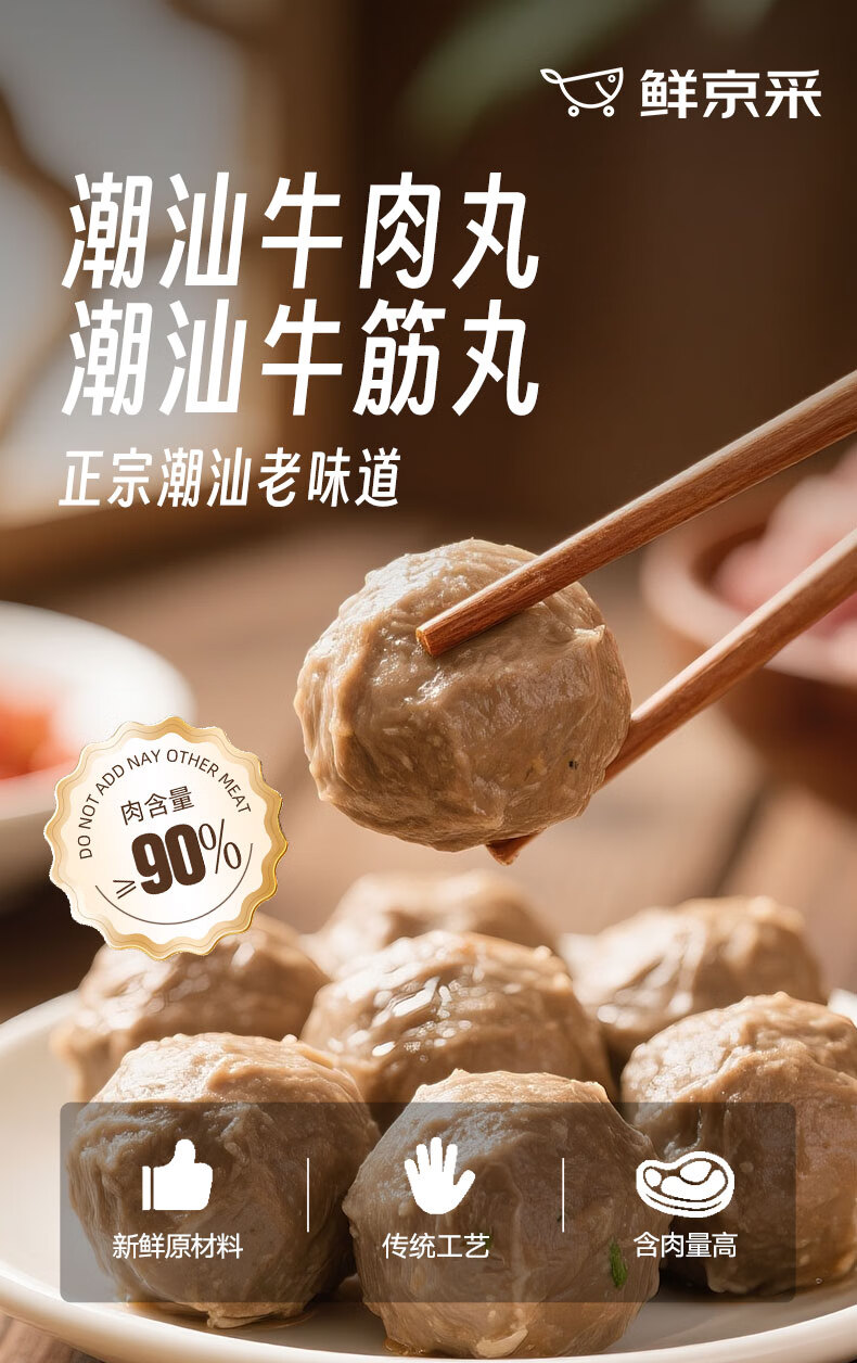 鲜京采正宗潮汕牛肉丸+牛筋丸 4斤 250g*8袋 火锅食材【春节也送货】