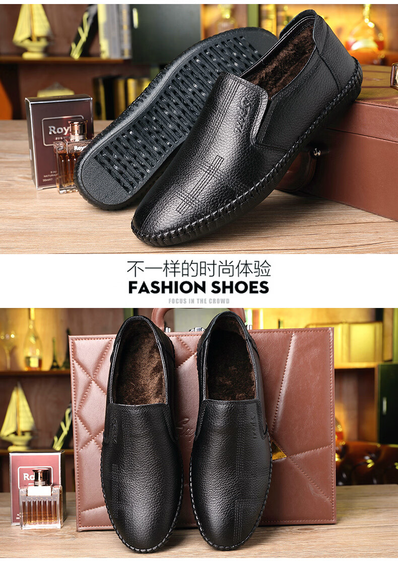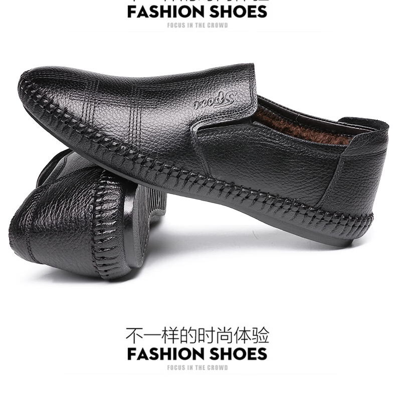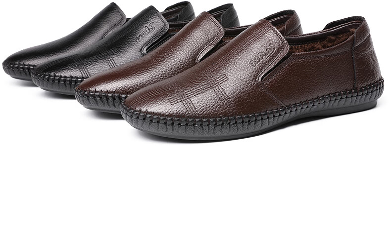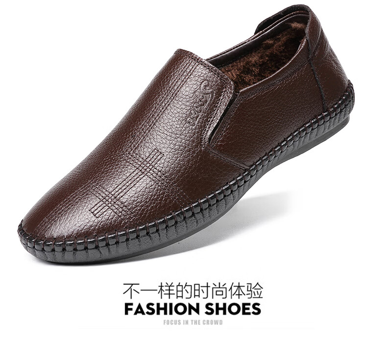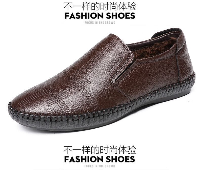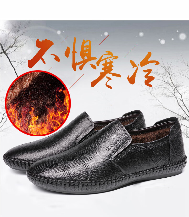 稻草人(MEXICAN)软底男鞋冬季加绒保暖二棉鞋一脚蹬懒人鞋子男真皮爸爸鞋男士皮鞋 黑色【加绒款】 37