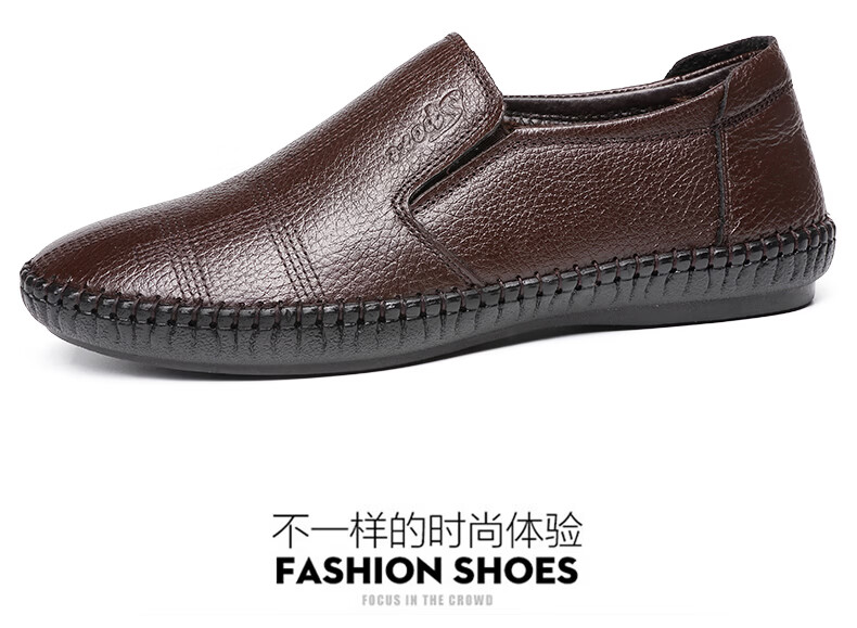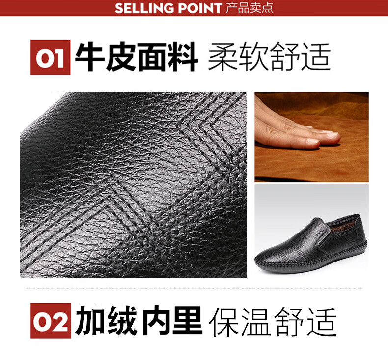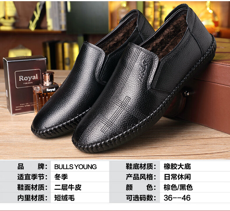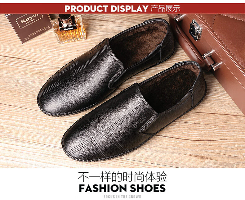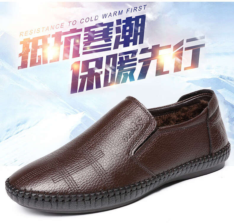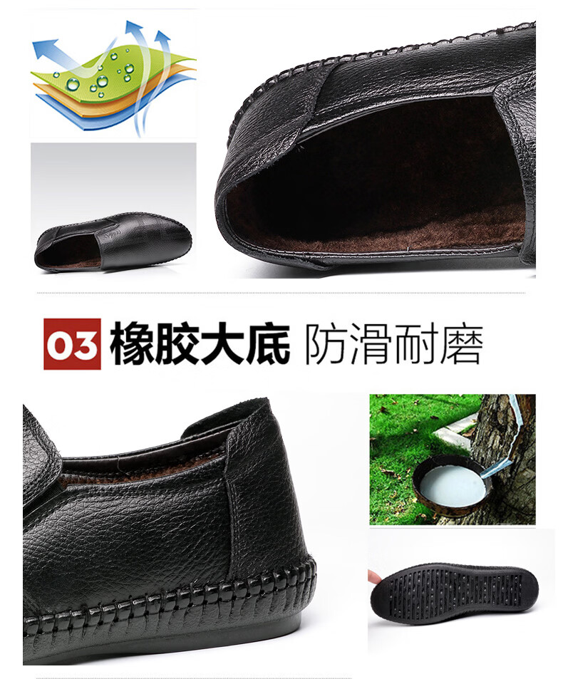 稻草人(MEXICAN)软底男鞋冬季加绒保暖二棉鞋一脚蹬懒人鞋子男真皮爸爸鞋男士皮鞋 黑色【加绒款】 37
