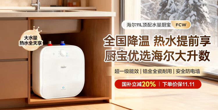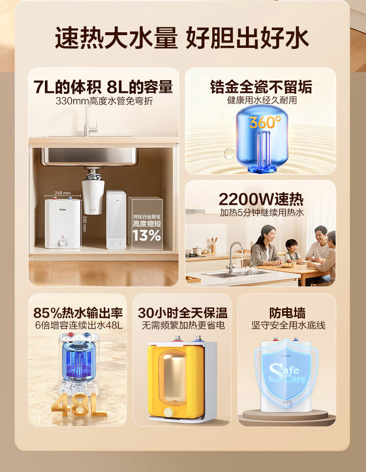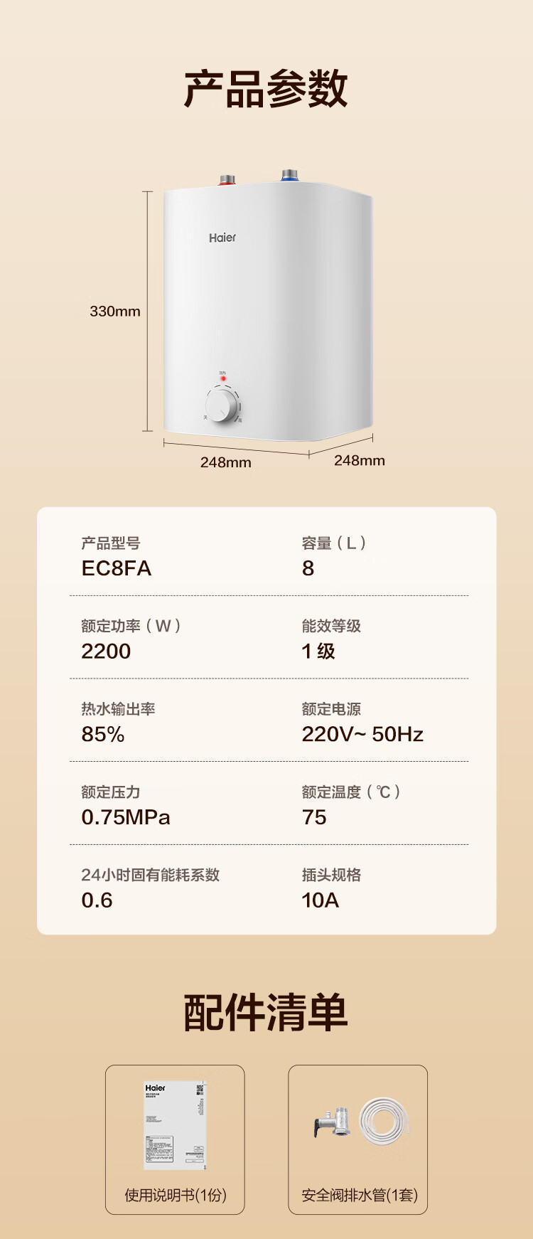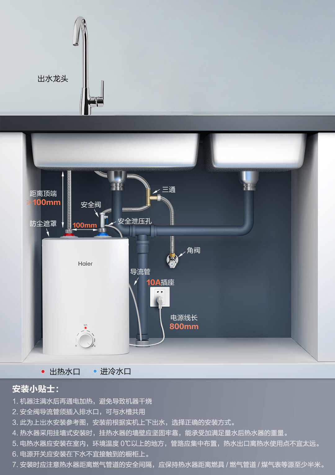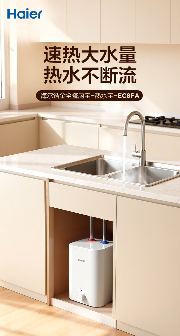 海尔(Haier)国家补贴小厨宝电热水器8升 EC8FA 一级能效京东自营2200W速热大水量家用厨房小型储水式热水宝