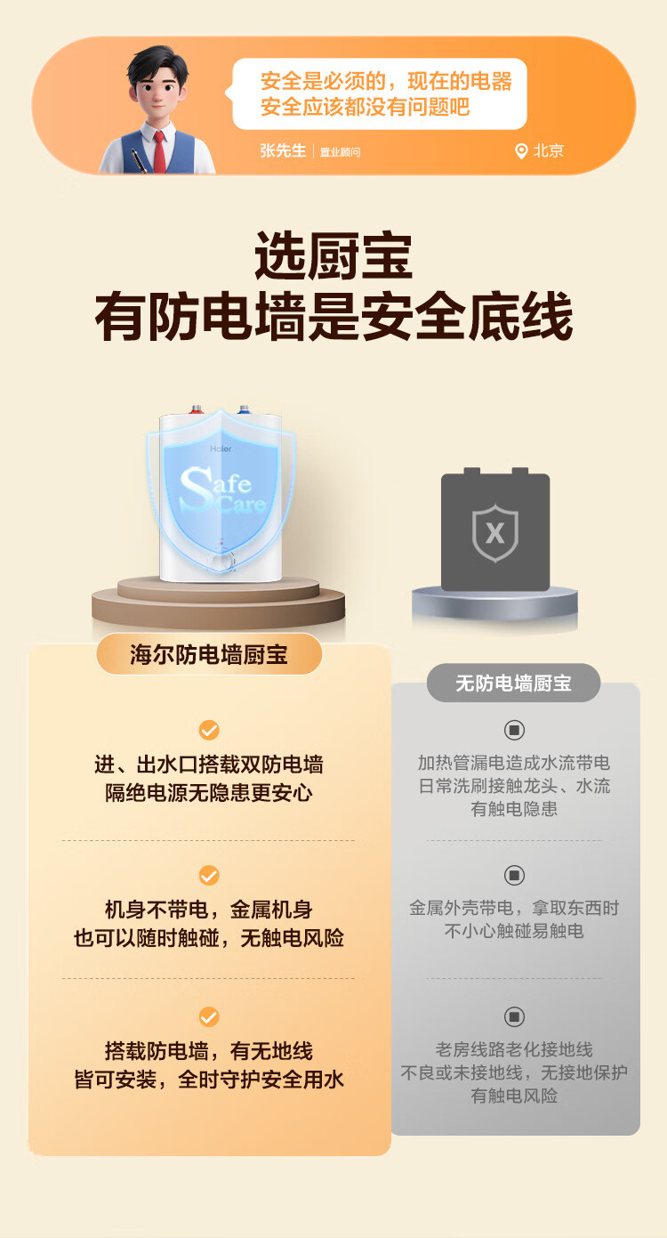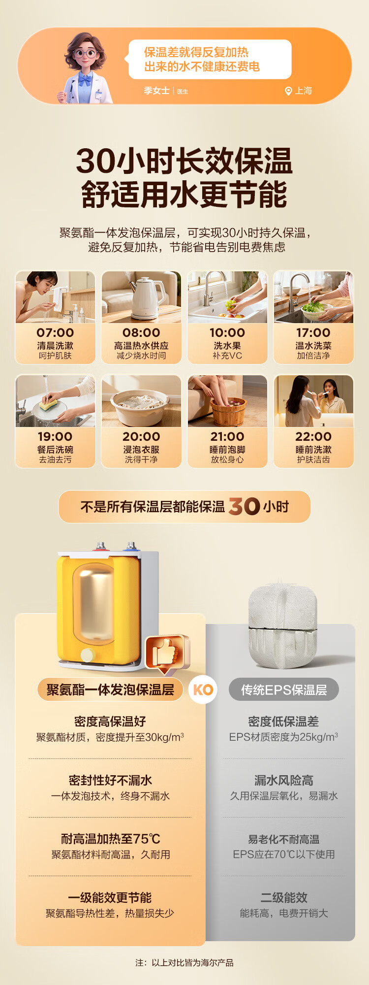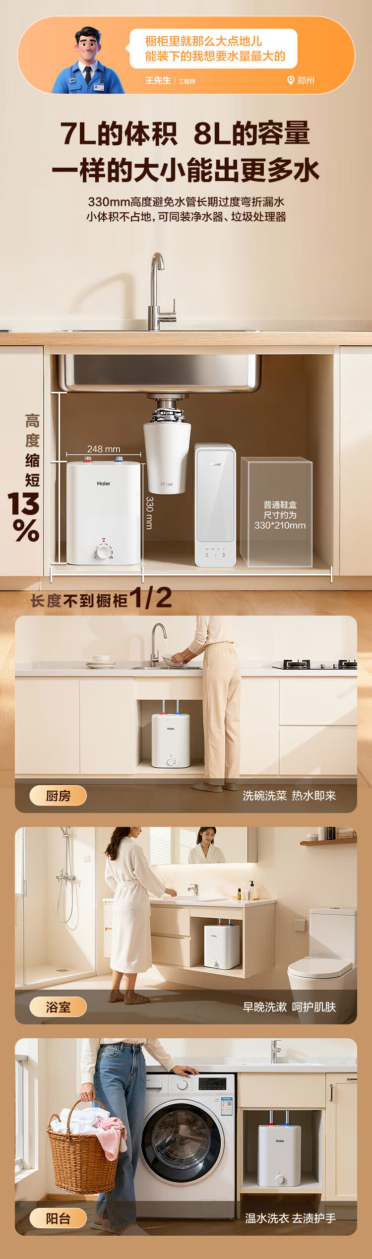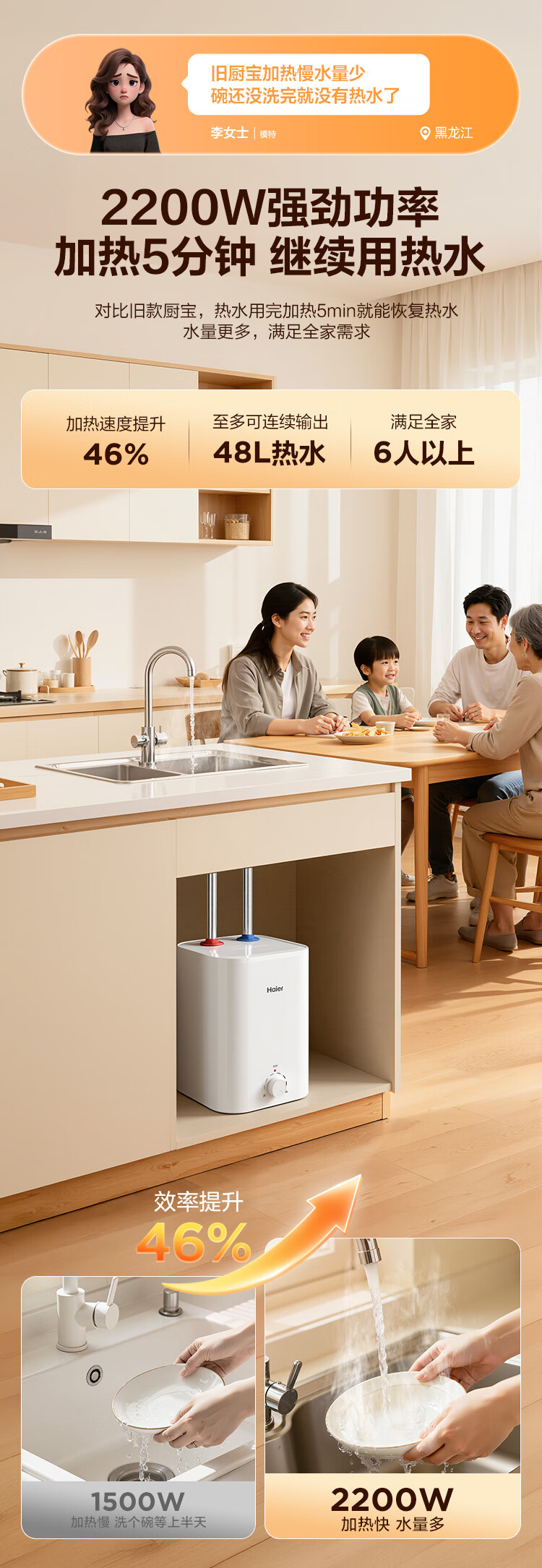 海尔(Haier)国家补贴小厨宝电热水器8升 EC8FA 一级能效京东自营2200W速热大水量家用厨房小型储水式热水宝
