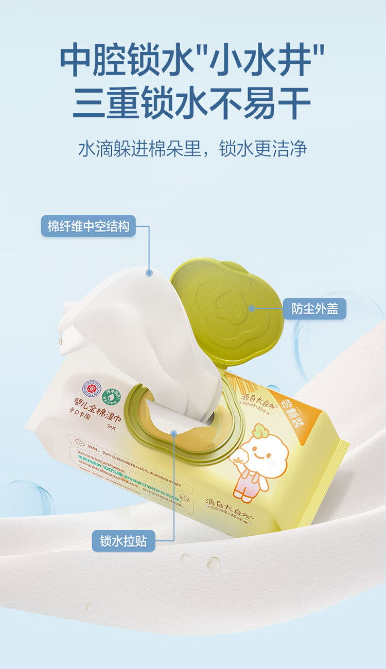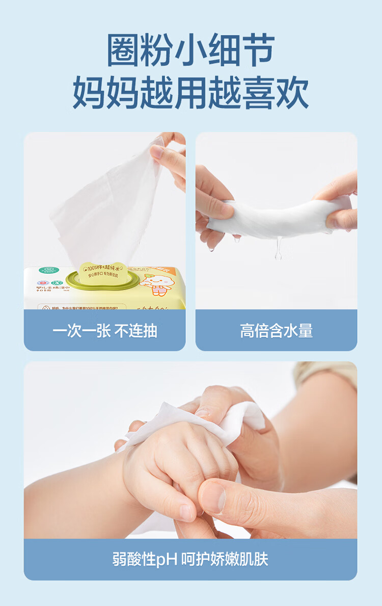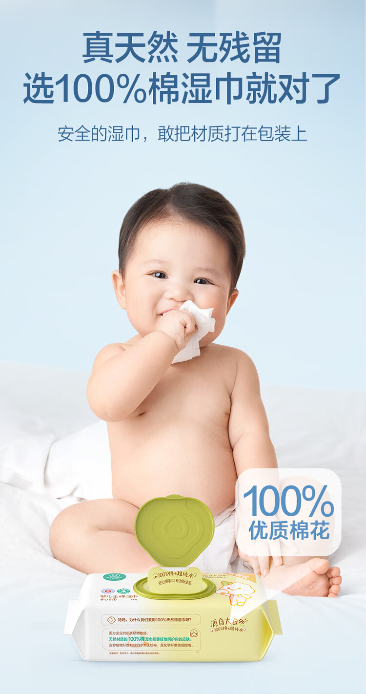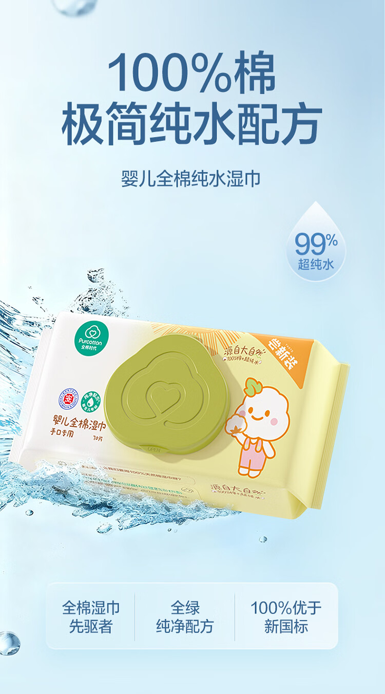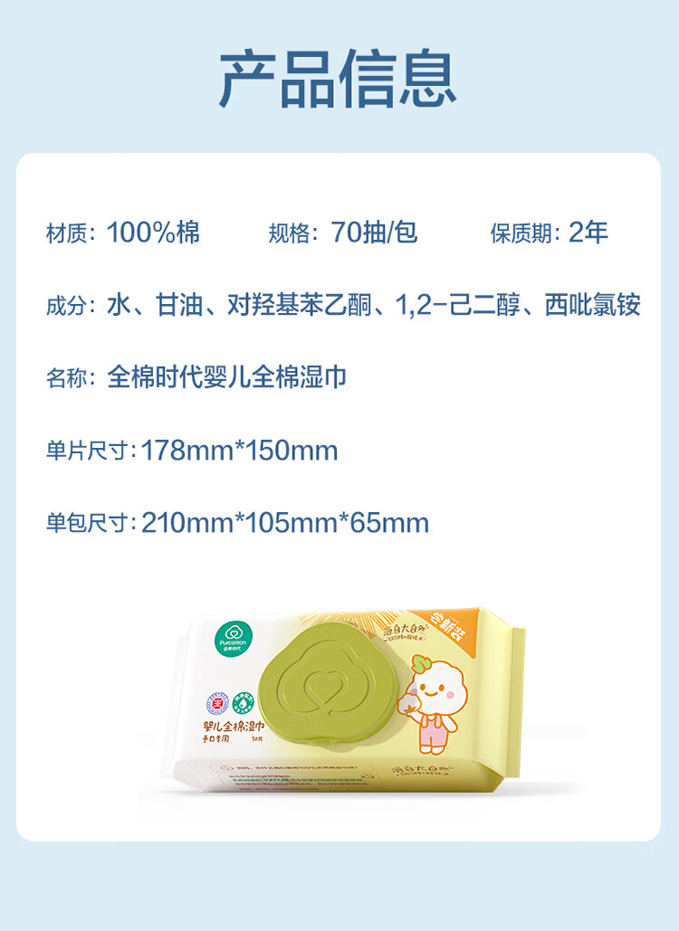 全棉时代(PurCotton)婴儿湿巾新生儿宝宝手口湿纸巾带盖实惠装 70抽/袋15cm*17.8cm