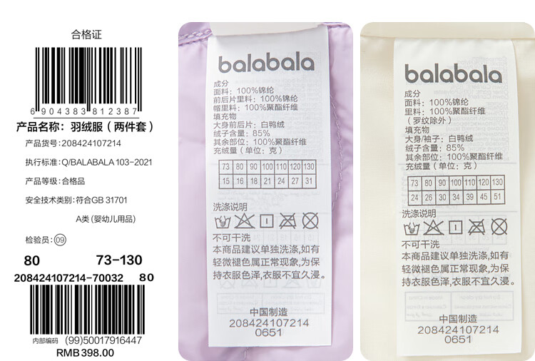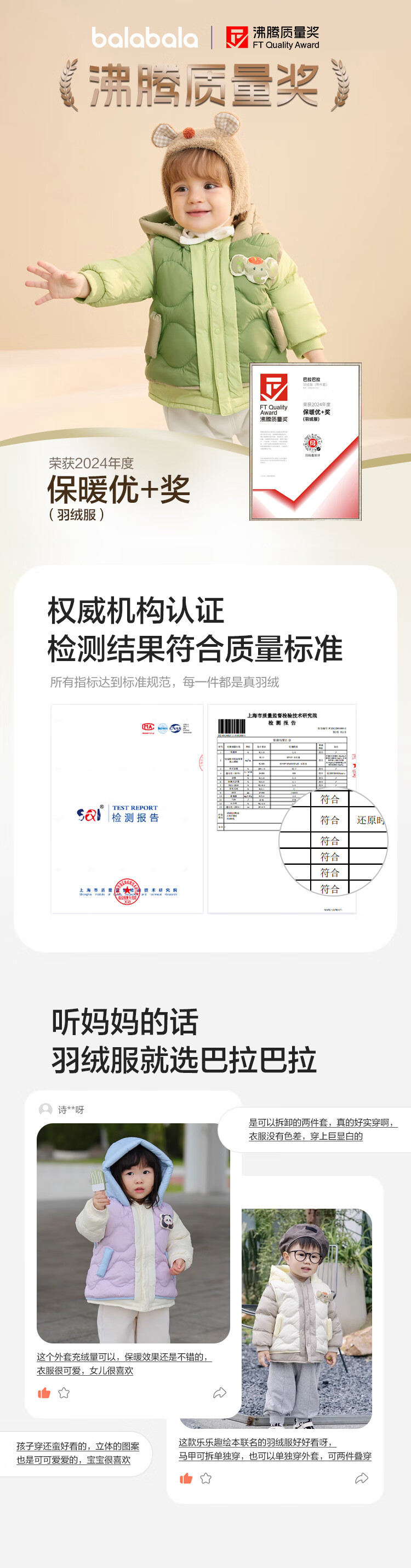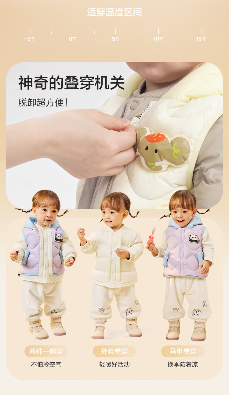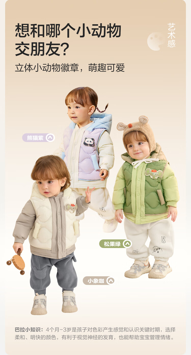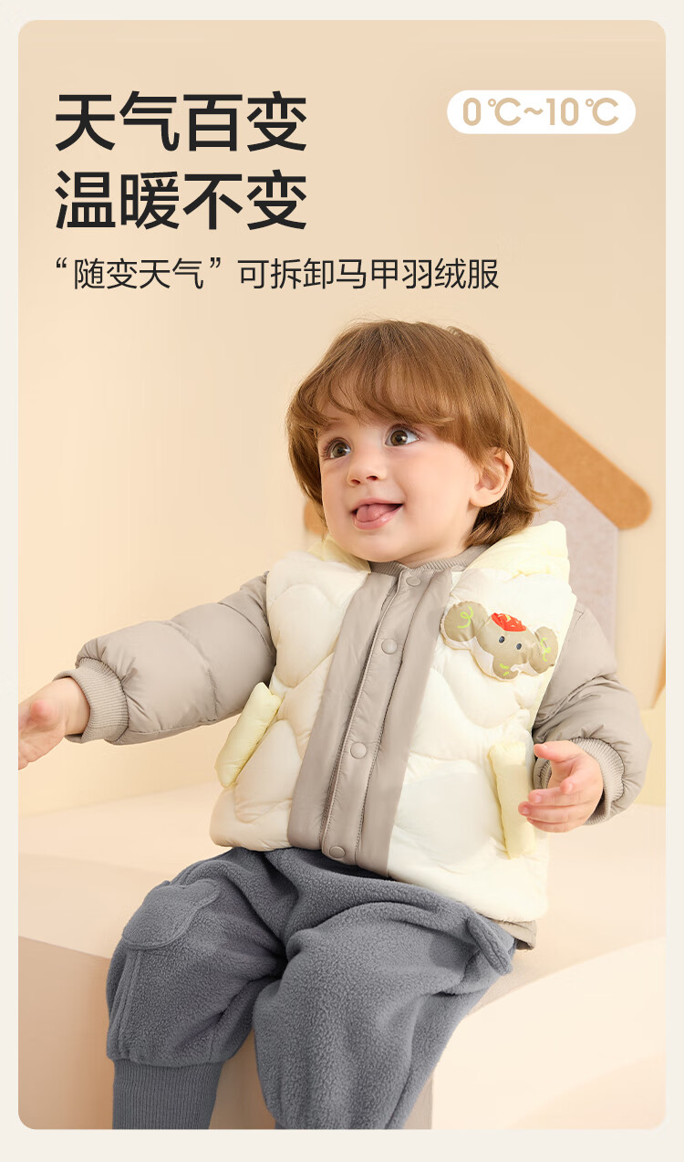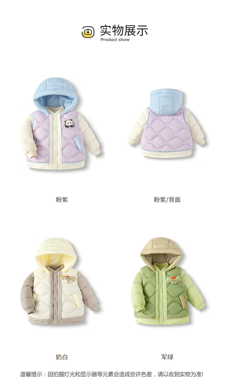 巴拉巴拉童装宝宝羽绒服保暖婴儿外套儿童冬季两件套萌趣男童女童