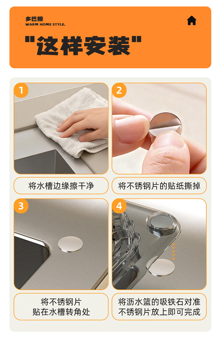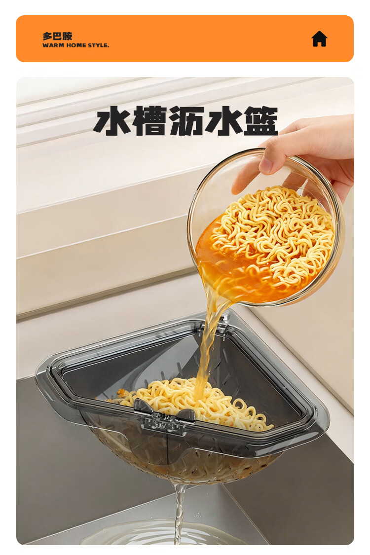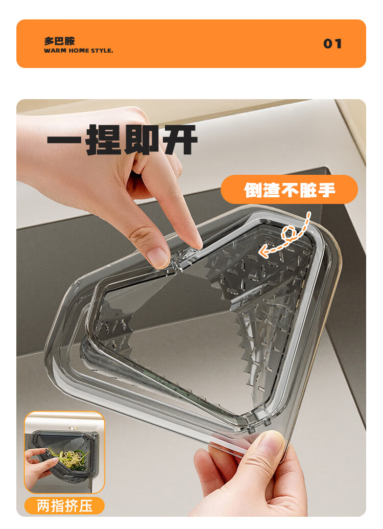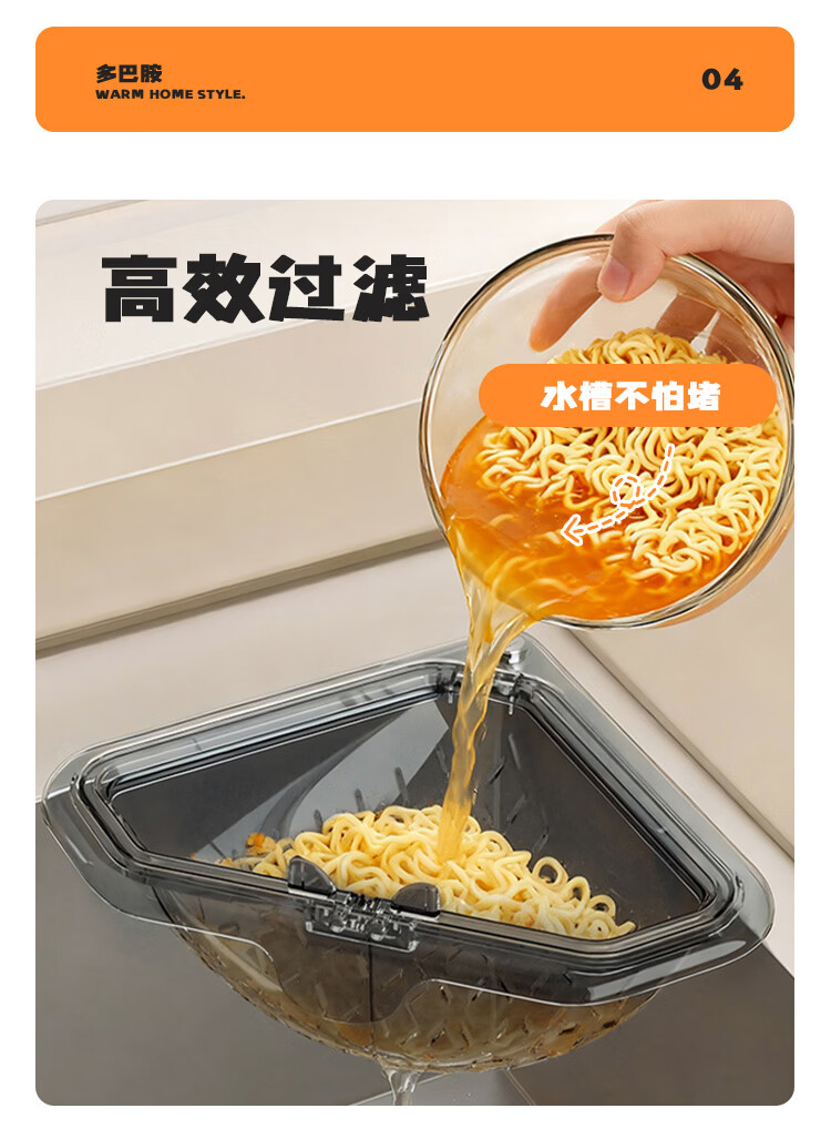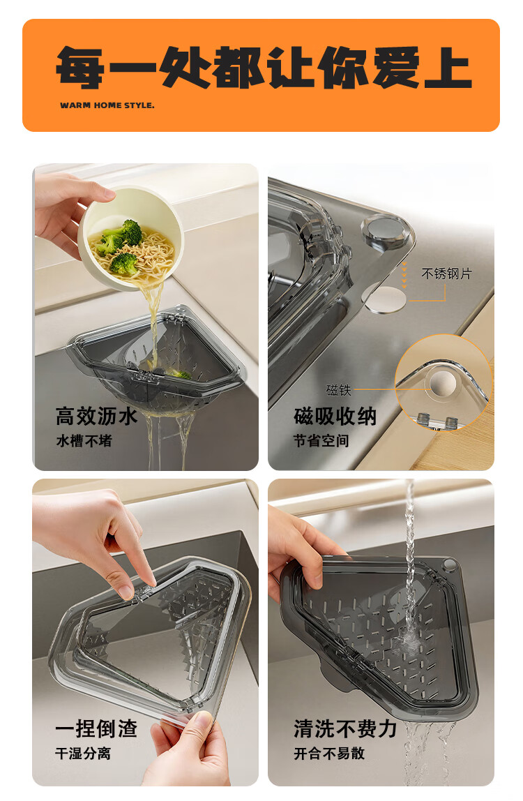 OEING水槽沥水架磁吸式2026新款磁吸厨房水槽沥水篮食物残渣过滤篮子 1个装-透灰色【磁吸吸附/过滤不脏手】