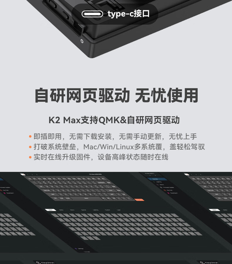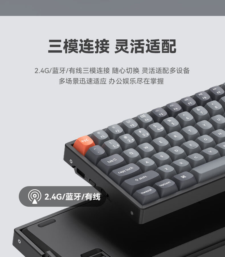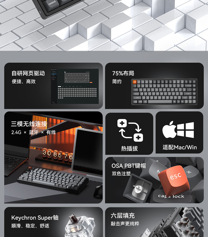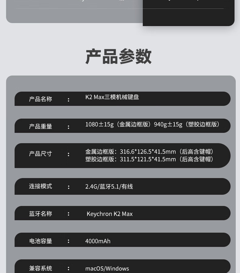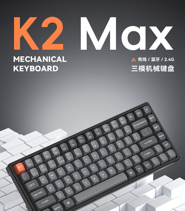 keychron渴创 K2Max 机械键盘 无线三模键盘 客制化键盘 Mac蓝牙键盘 QMK/VIA开源改键 适配游戏办公 黑色 K2Max 不可插拔 白光 茶轴