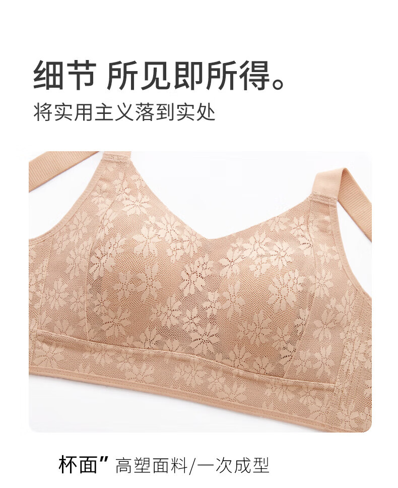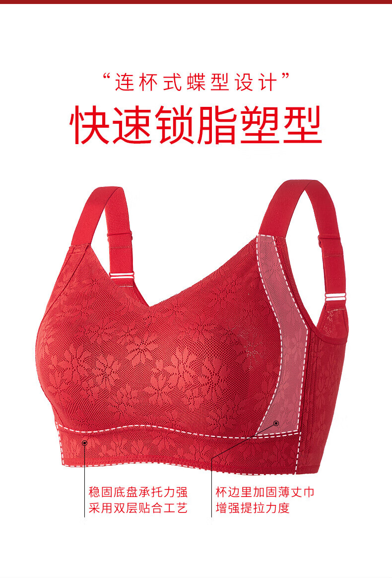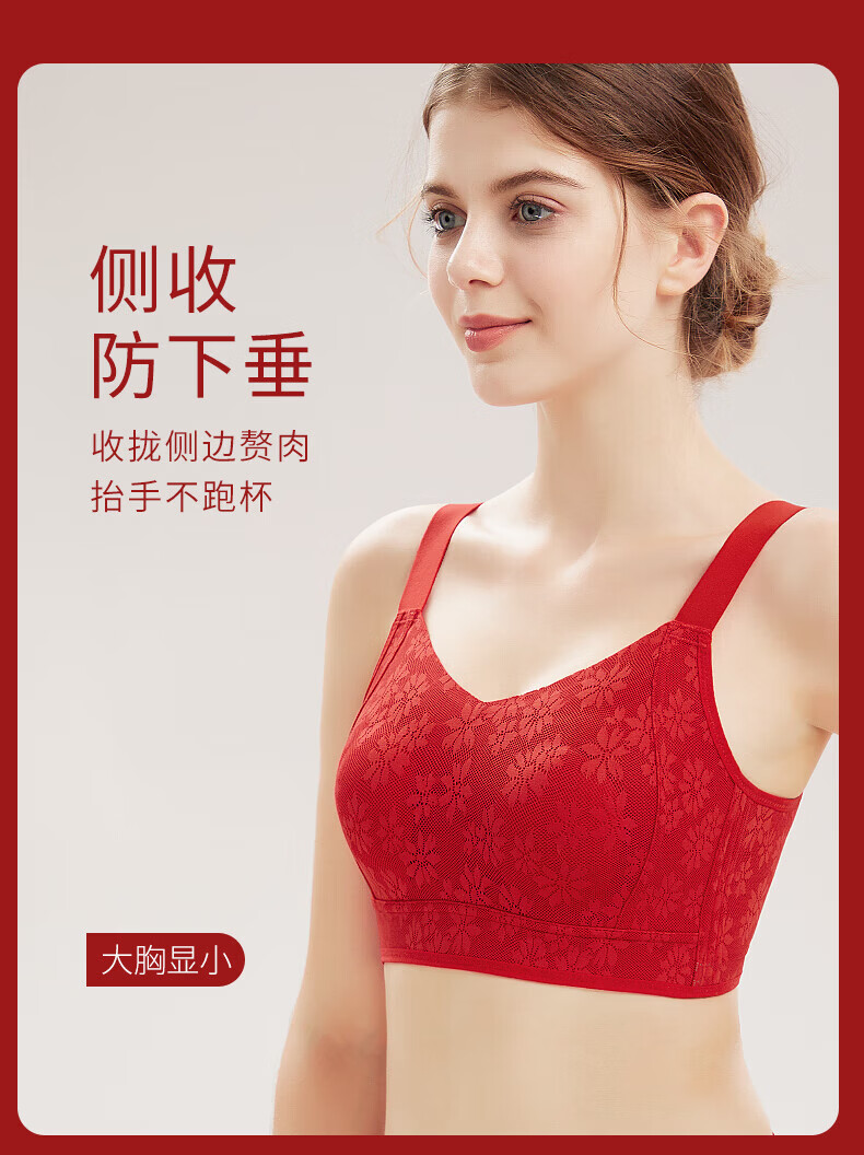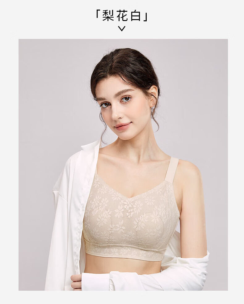千奈美无痕提花大胸显小收副乳防下垂显瘦文胸内衣 梨花白 3XL (95BCD/90E)