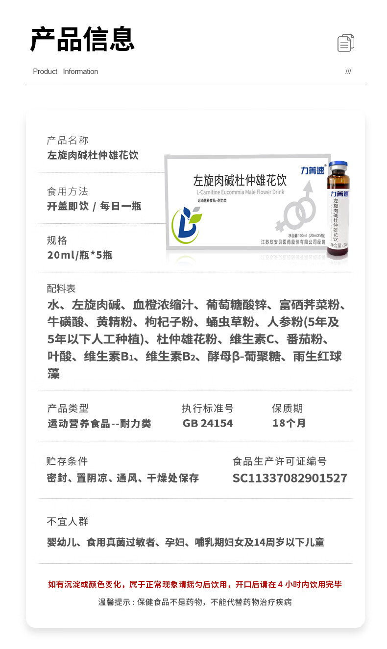 欣安贝力菁速左旋肉碱杜仲雄花饮适合男士备孕提高精调理子质量调理饮料 【周期装】 5瓶*7盒 【买6送1到手7盒】
