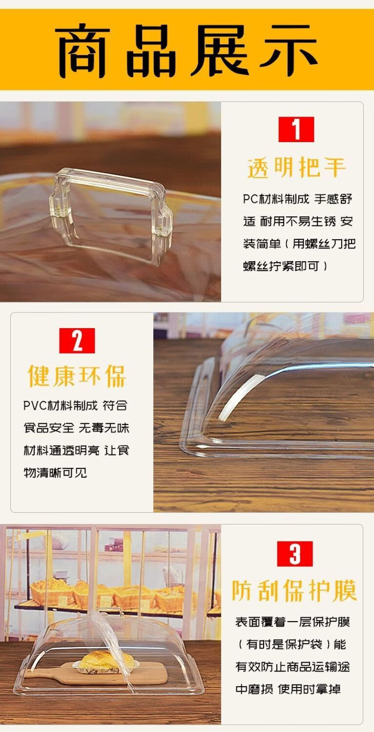 透明盖子长方形食品盖摆摊塑料盖面包蛋糕熟食展示罩保鲜盖防尘罩 耐高温110度圆形盖子54㎝