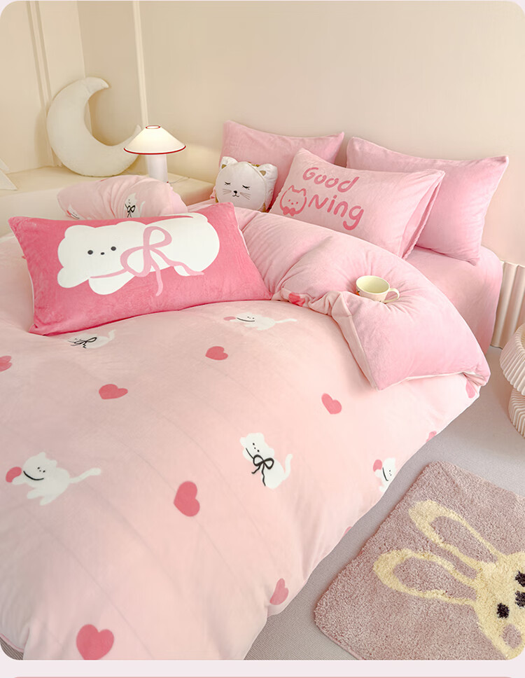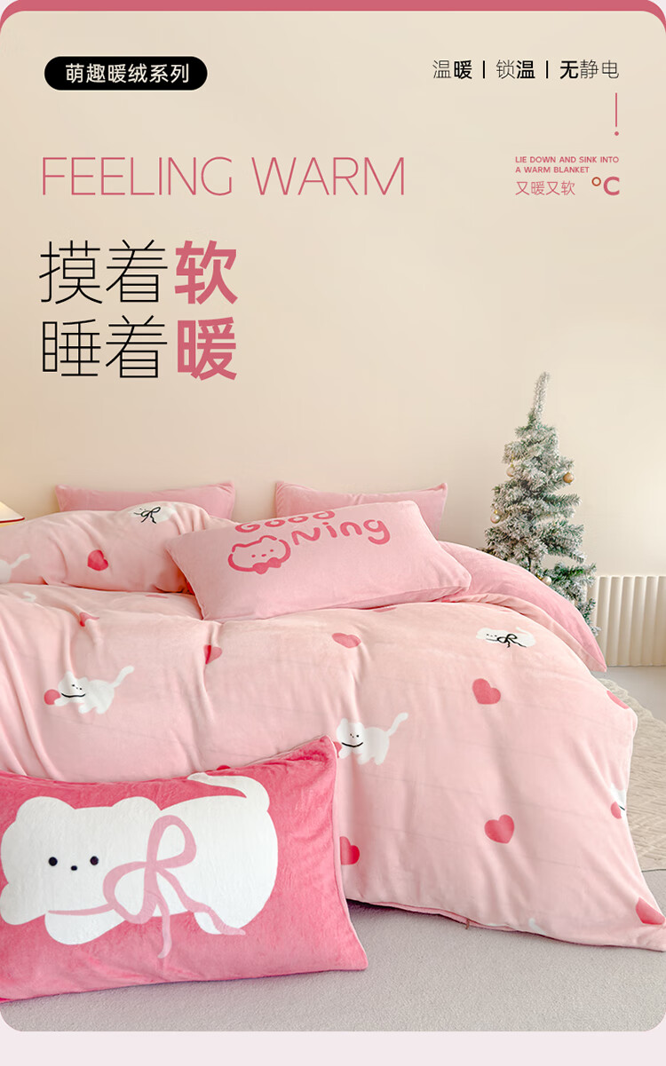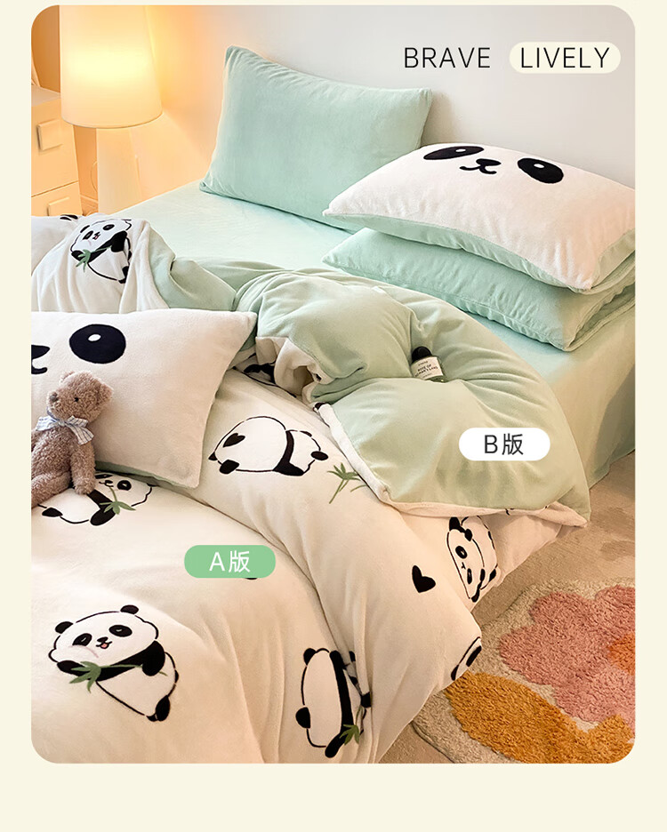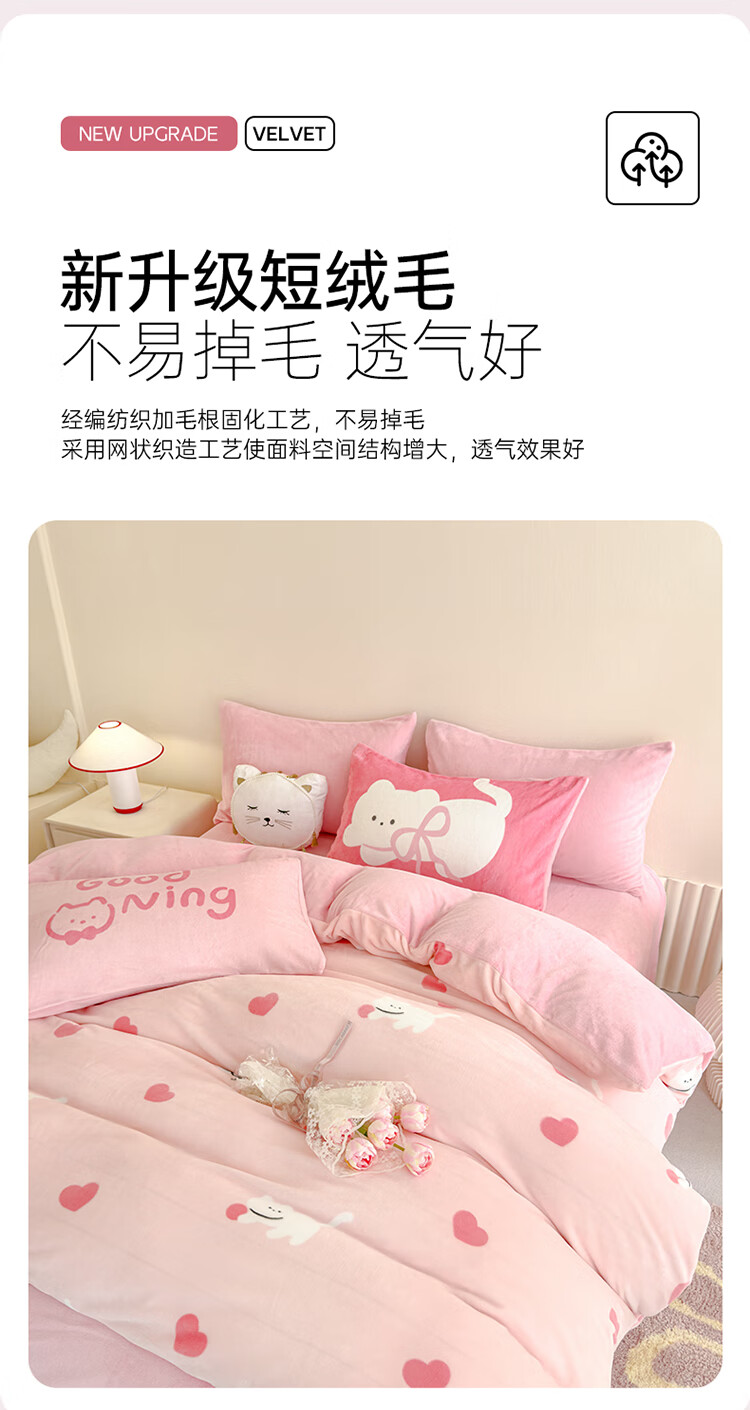 软贝小清新牛奶绒床上四件套保暖毛绒床单被套学生宿舍秋冬款三件套 咔咔小熊 床笠款 1.8m 被套200*230cm 四件套