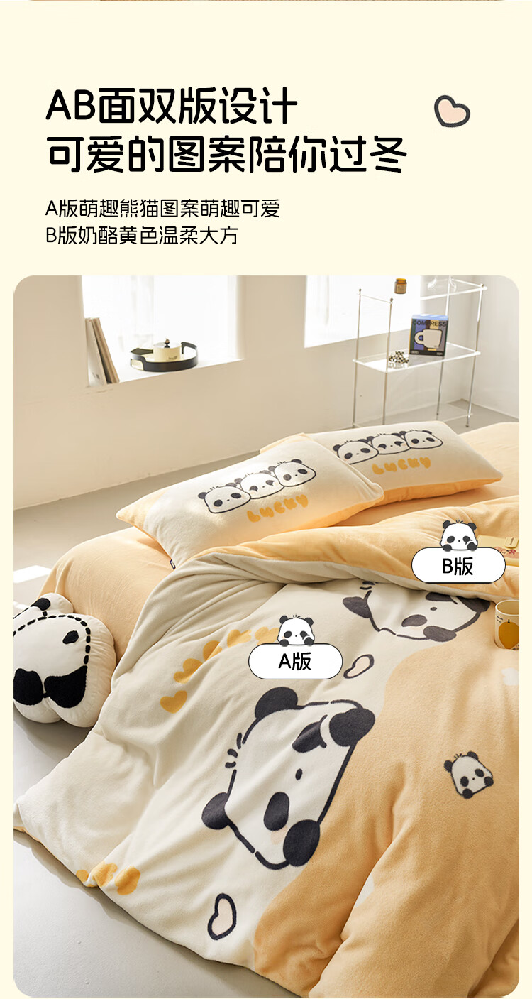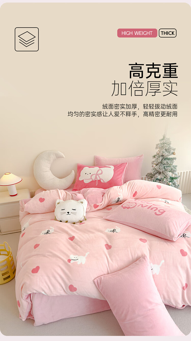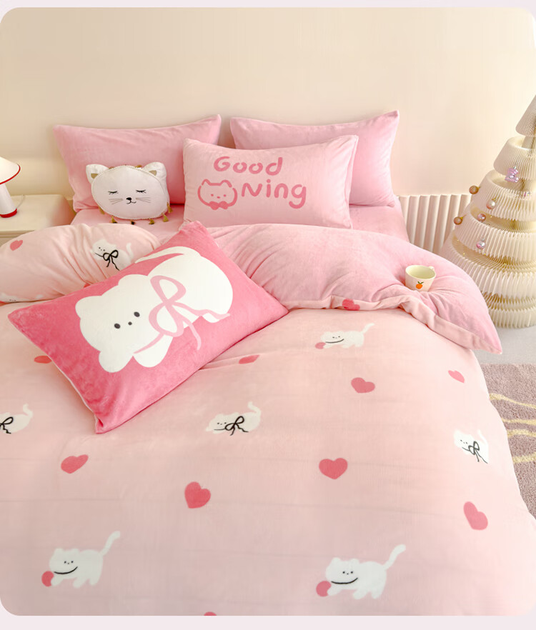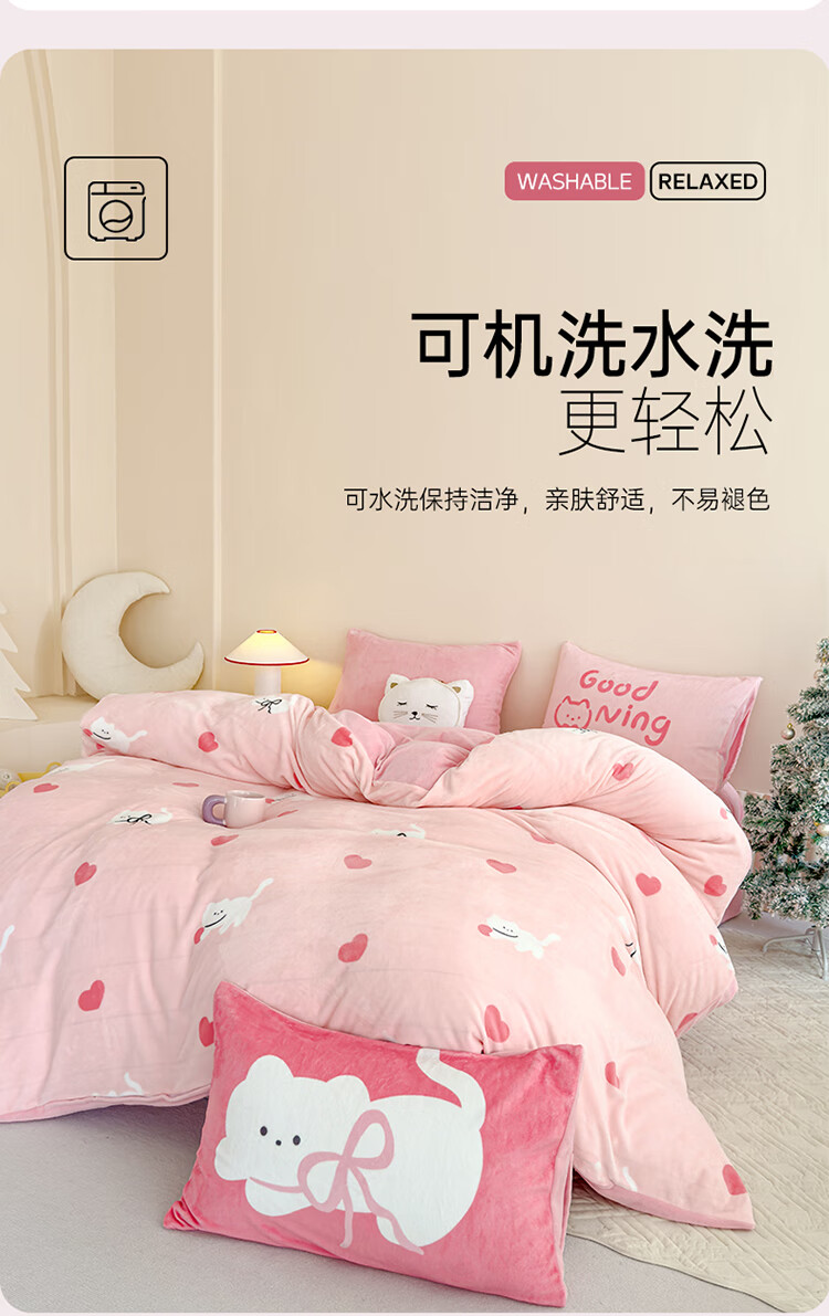 软贝小清新牛奶绒床上四件套保暖毛绒床单被套学生宿舍秋冬款三件套 咔咔小熊 床笠款 1.8m 被套200*230cm 四件套