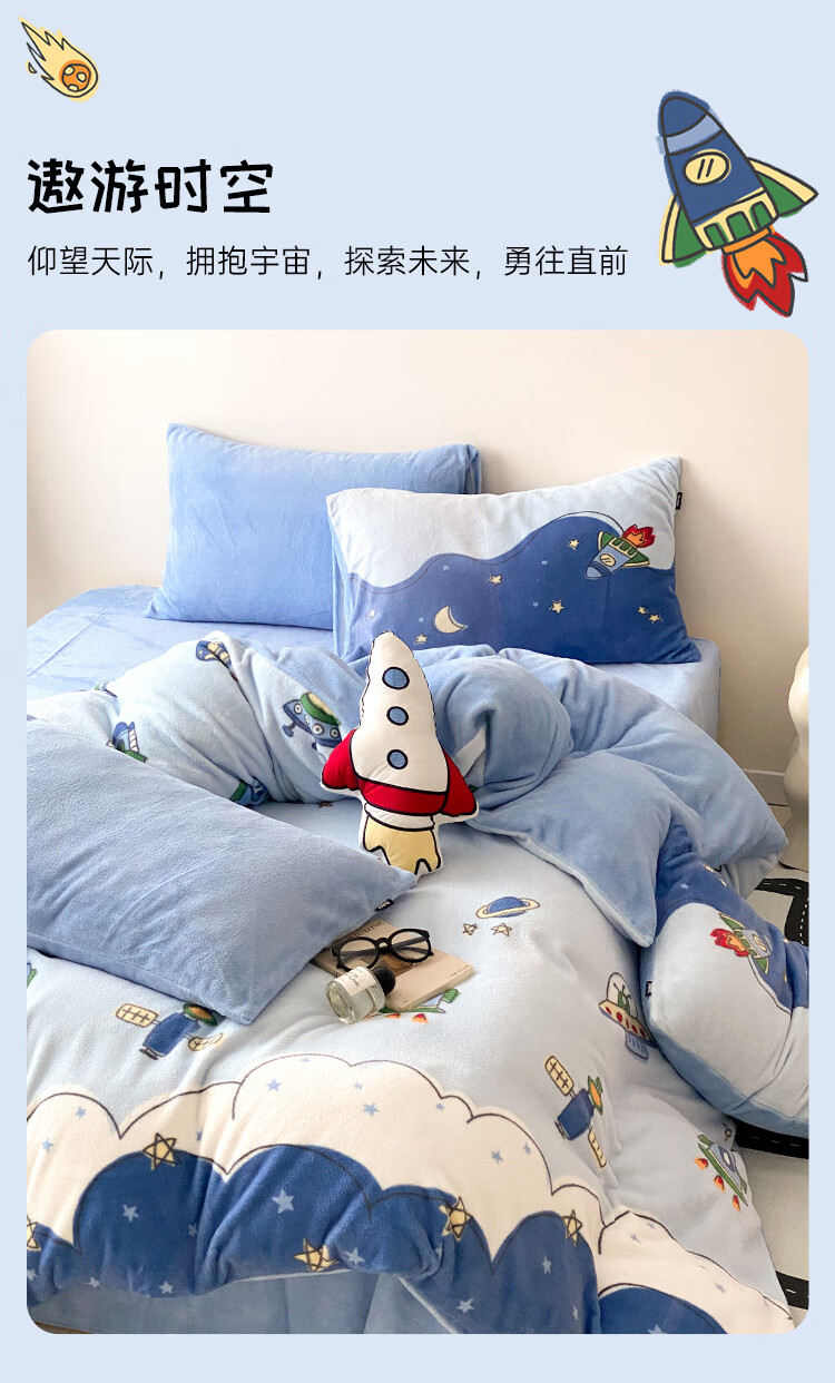 多喜爱家纺牛奶绒四件套 加厚保暖暖暖绒防静电秋冬套件绒床单被套 繁星入梦 1.5m 床单款 四件套被套203*229cm