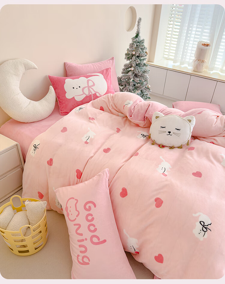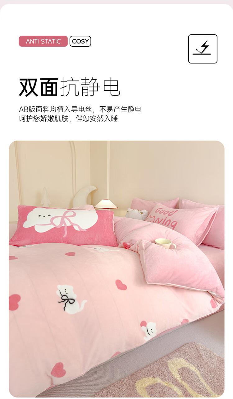 软贝小清新牛奶绒床上四件套保暖毛绒床单被套学生宿舍秋冬款三件套 布丁狗 床单款 2.0m 被套200*230cm 四件套