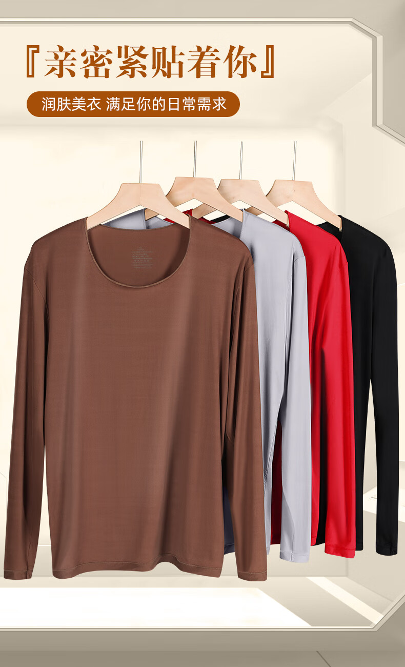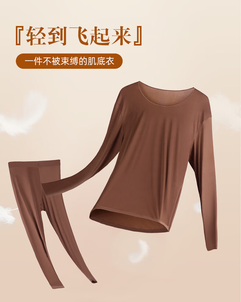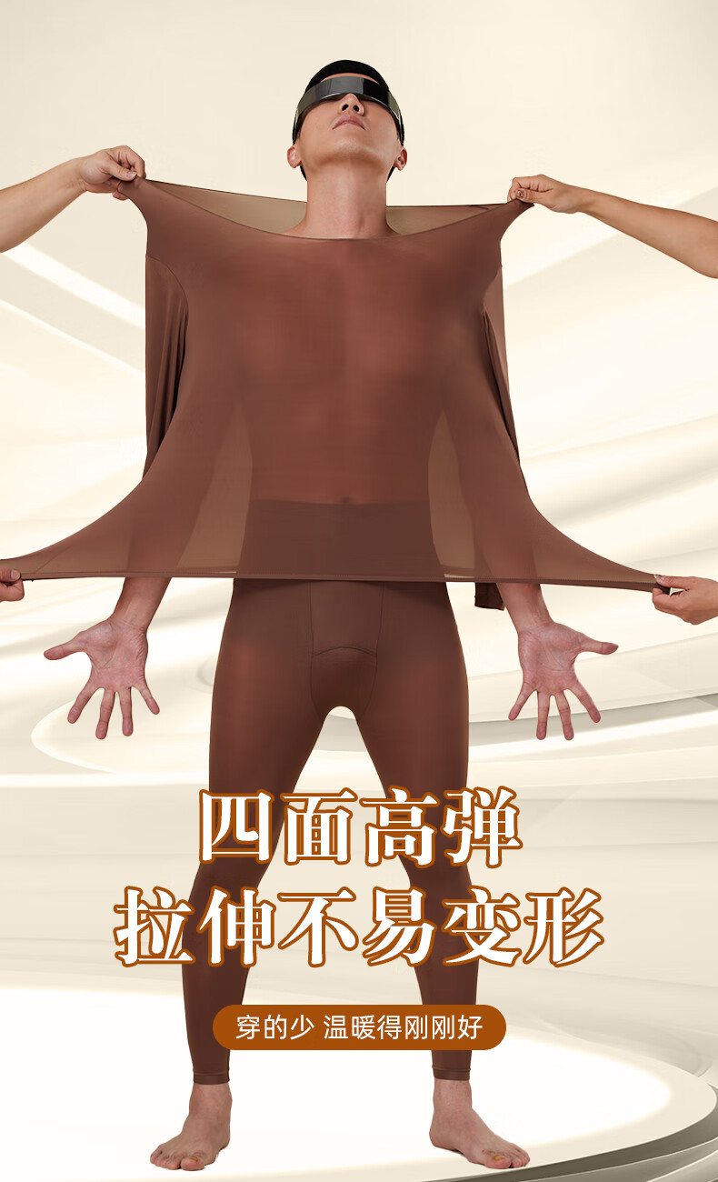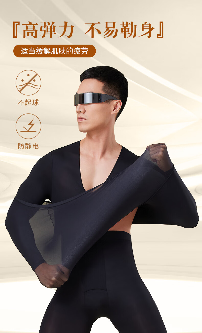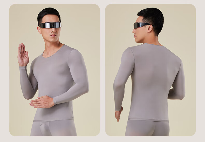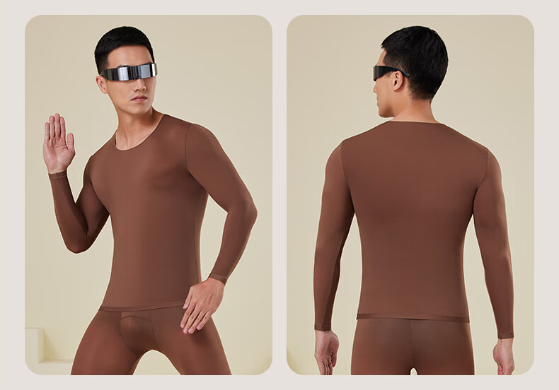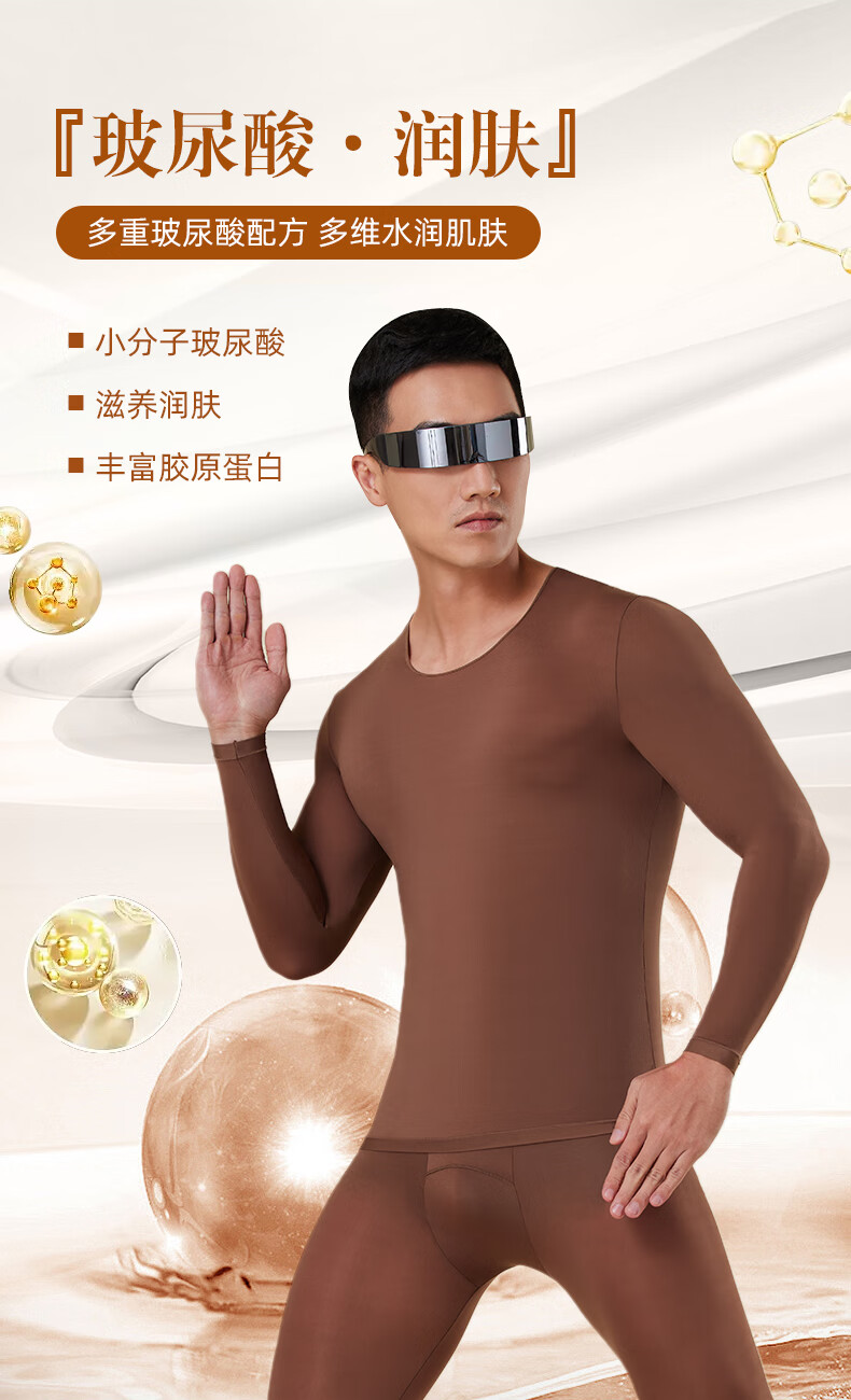 芙丹琪男士保暖套装美肤衣秋衣秋裤打底衫超轻薄高弹隐形面膜内衣养肤衣 米驼色 XL 建议150-200斤